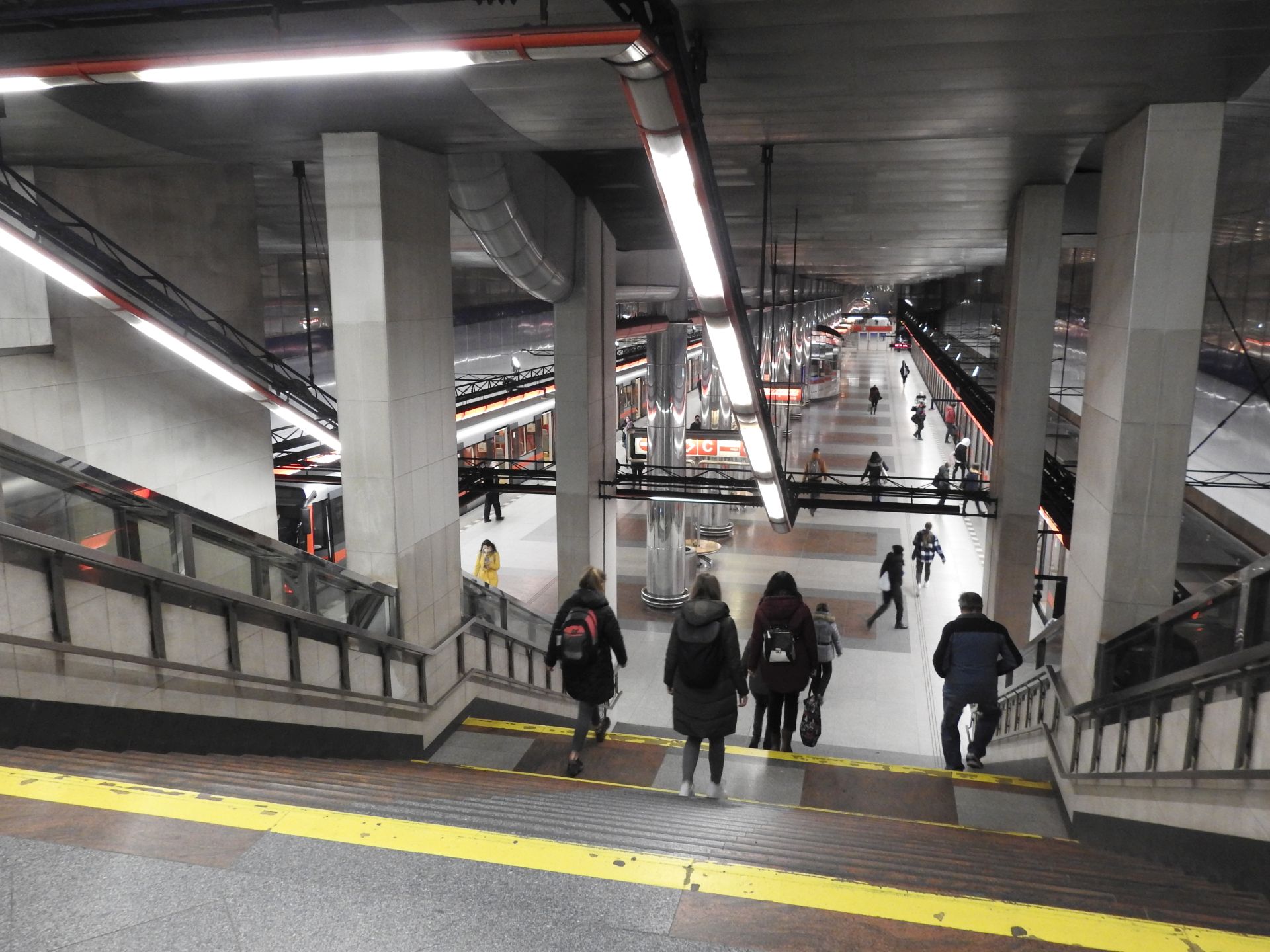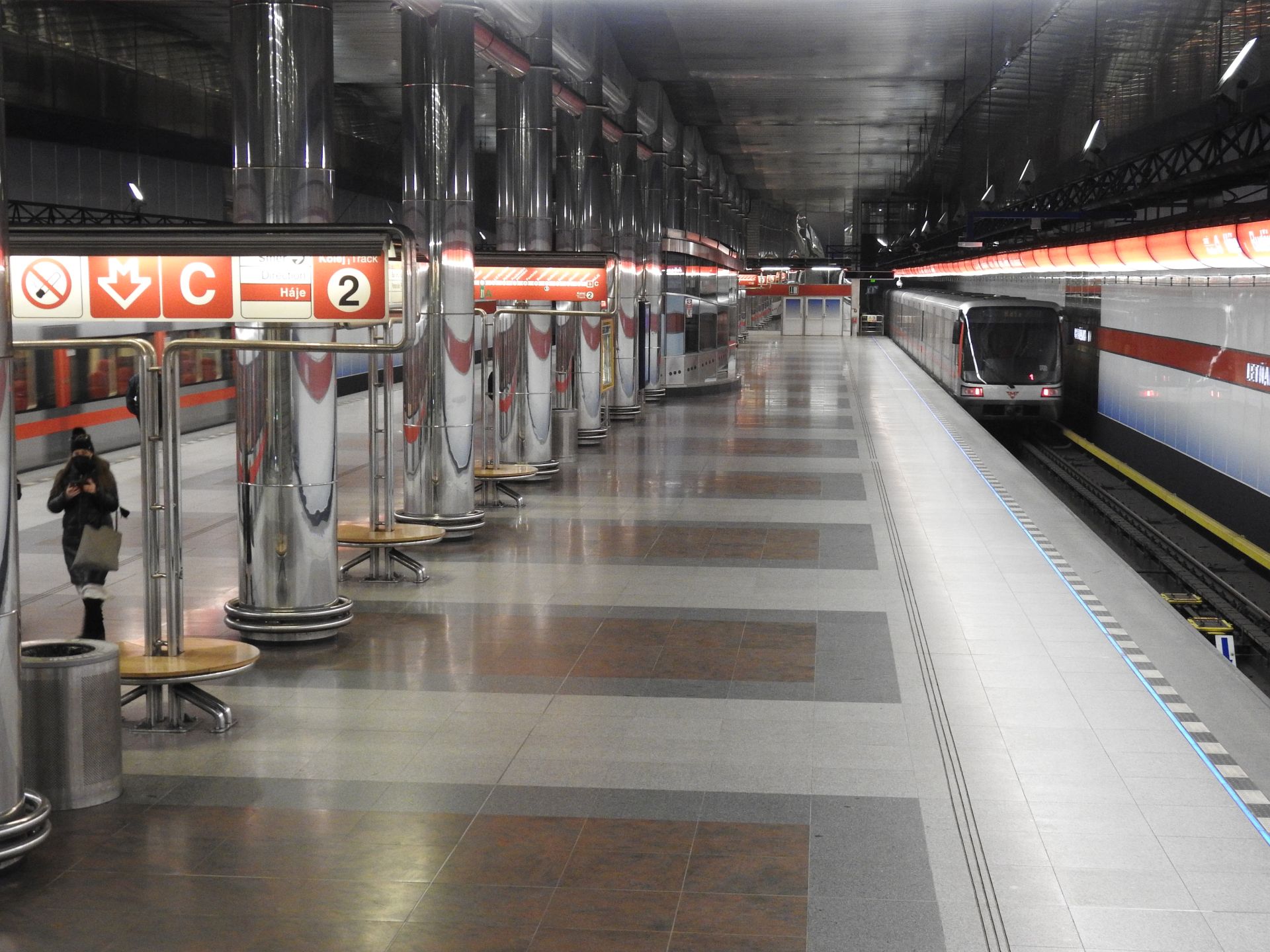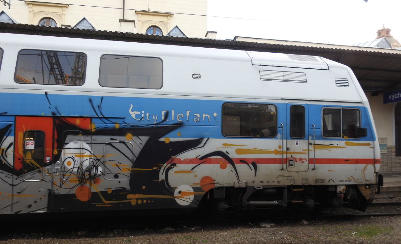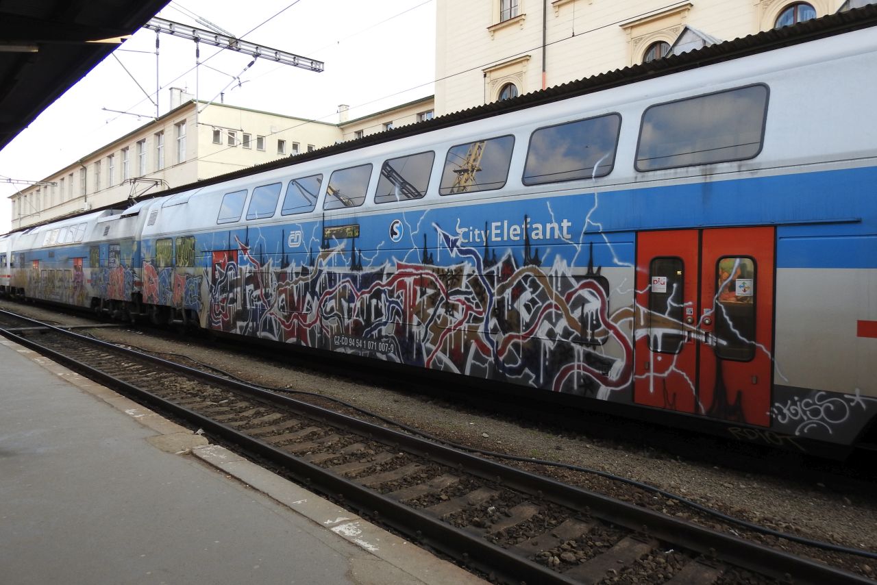 Než mi přijela tramvaj, tak jsem nahlédl na krásné Masarykovo nádraží. Hezké mašinky, dokonce krásně pomalované. Těžko bych asi hledal dveře, abych mohl nastoupit. Skoro jsem myslel, že tak pomalovaná souprava je určená do šrotu, leč opravdu odjela směr Kolín.