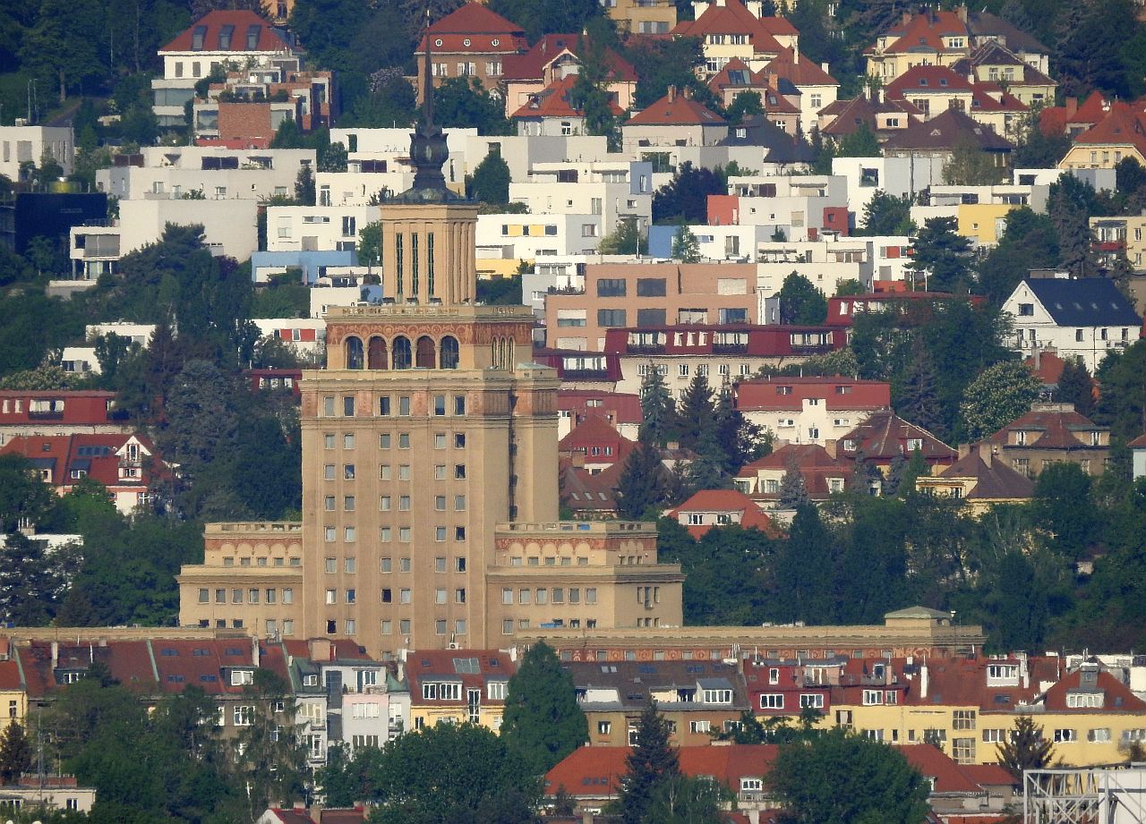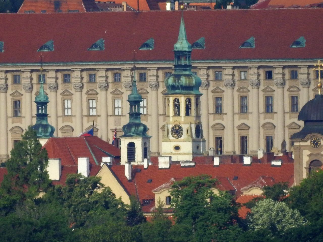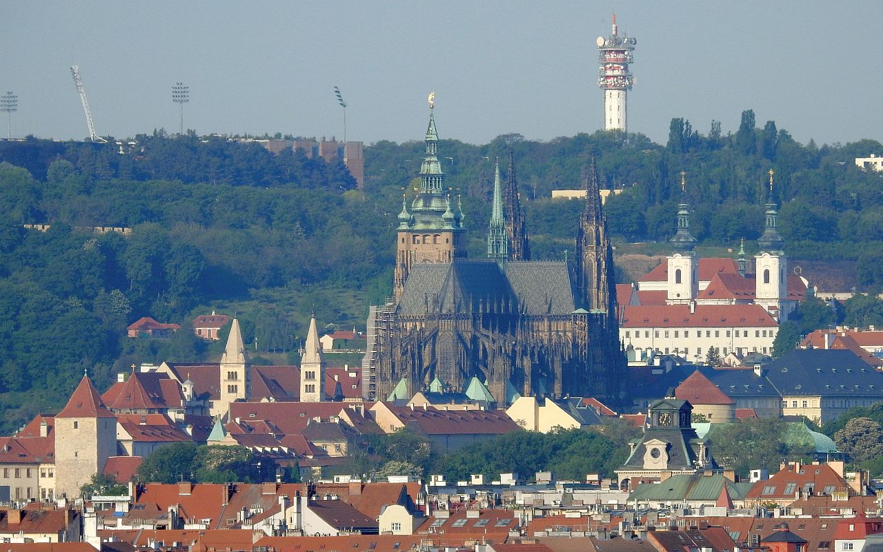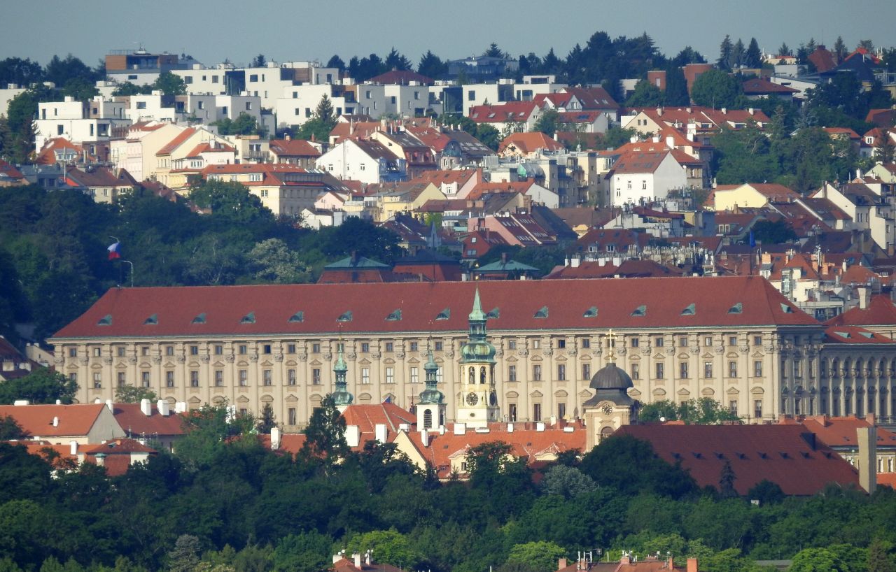 A také Ministerstvo války, zahraničních věcí, Loreta, dům pana Okamury (úplně nahoře červené věže) a samozřejmě Hrad.