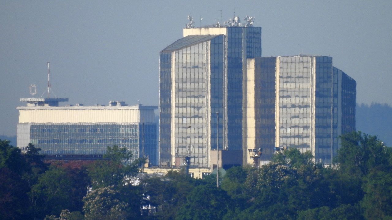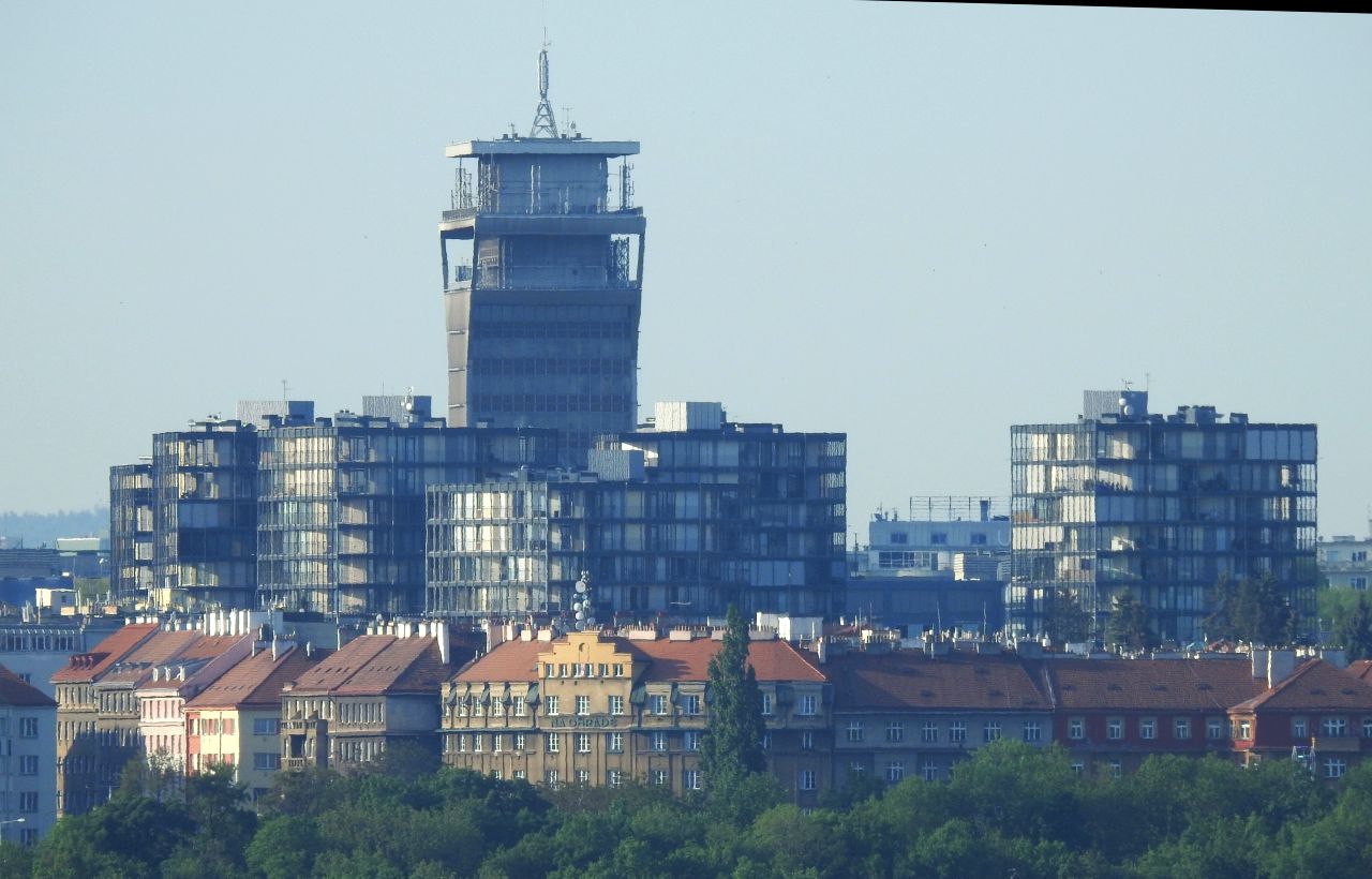 Ještě pár fot z okna - žižkovský vysílač, Pankrác, Olšany, Vyšehrad v pozadí Cukrák, ...