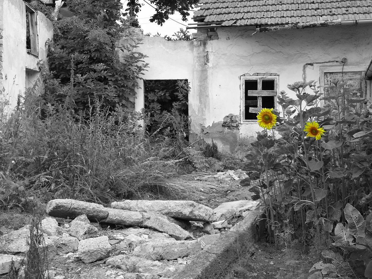 Dnes jsem našel zajímavé místo uprostřed obce ;) . Zaujalo mne , jak ty slunečnice nevěřícně "koukaly" ,kde to vyrostly :mrgreen: