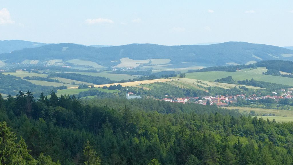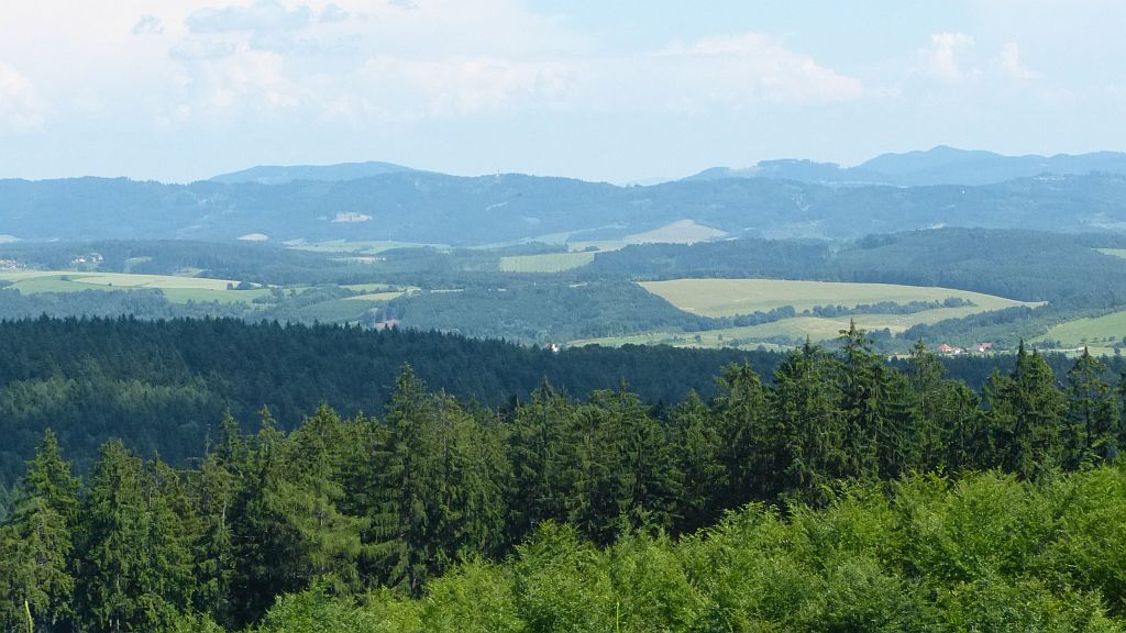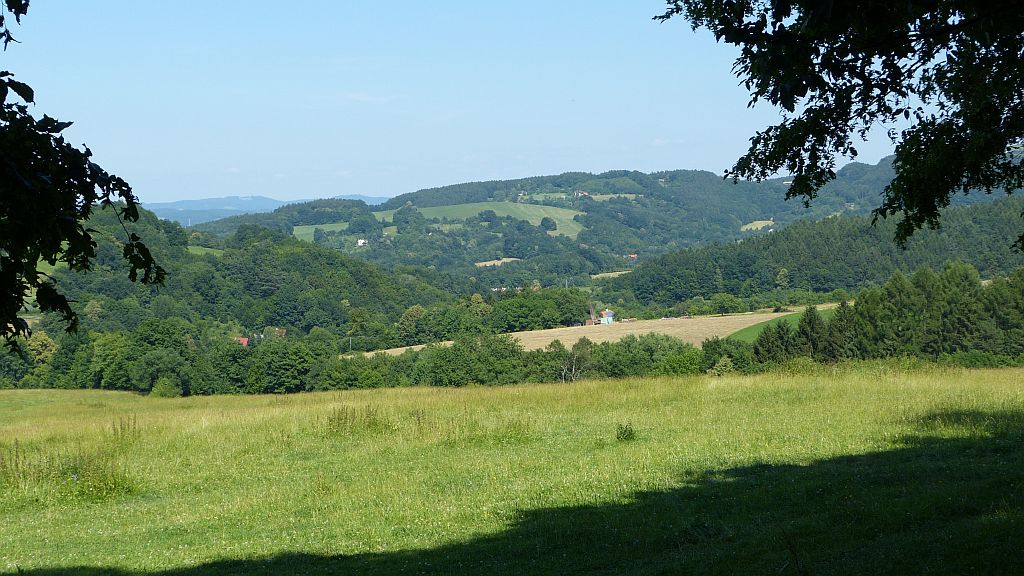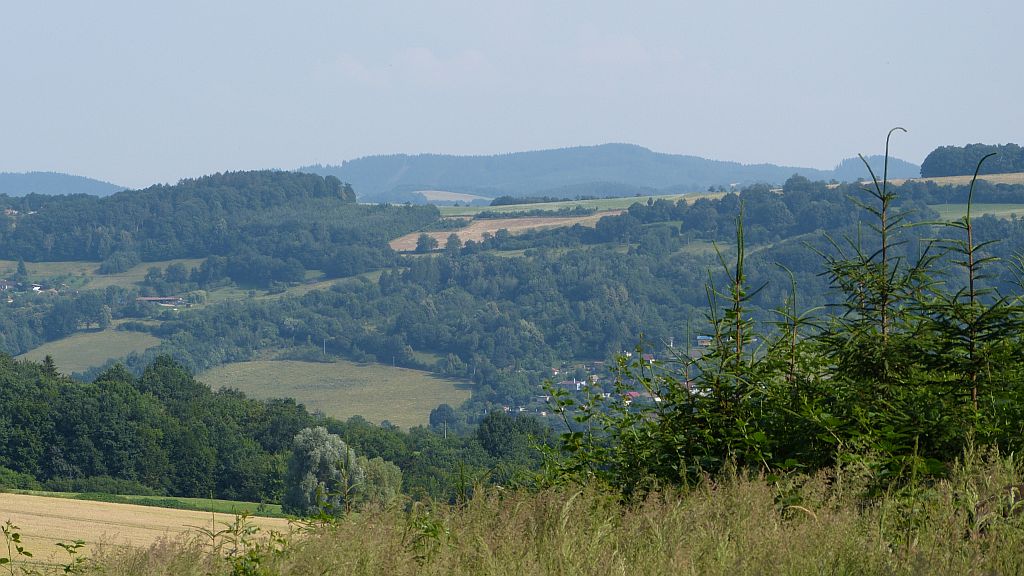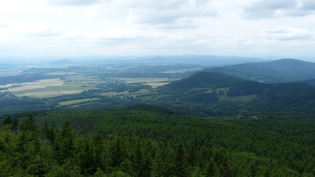Vlevo na horizontu vysílač Tlustá Hora