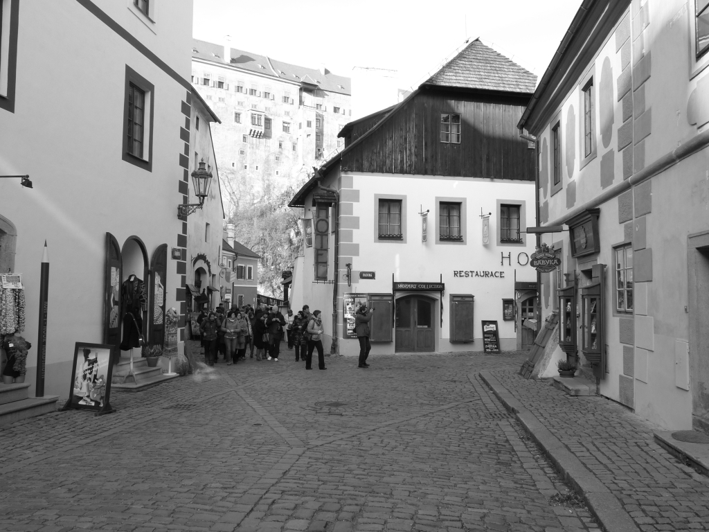 Oblíbeným dopravcem jsem si dále odskočil do Českého Krumlova. Šak je to jen kůsek, tož co ? Že fotím černobíle jsem zjistil, až jsem proběhl skoro celé město :mrgreen: Docela mě to nasštvalo, ale naštěstí Český Krumlov není tak velký, takže jsem ho proběhl ještě jednou :lol: Ještě že jsem měl dostatek filmu ve foťáku. Baterku jsem částečně dobil v autobuse.