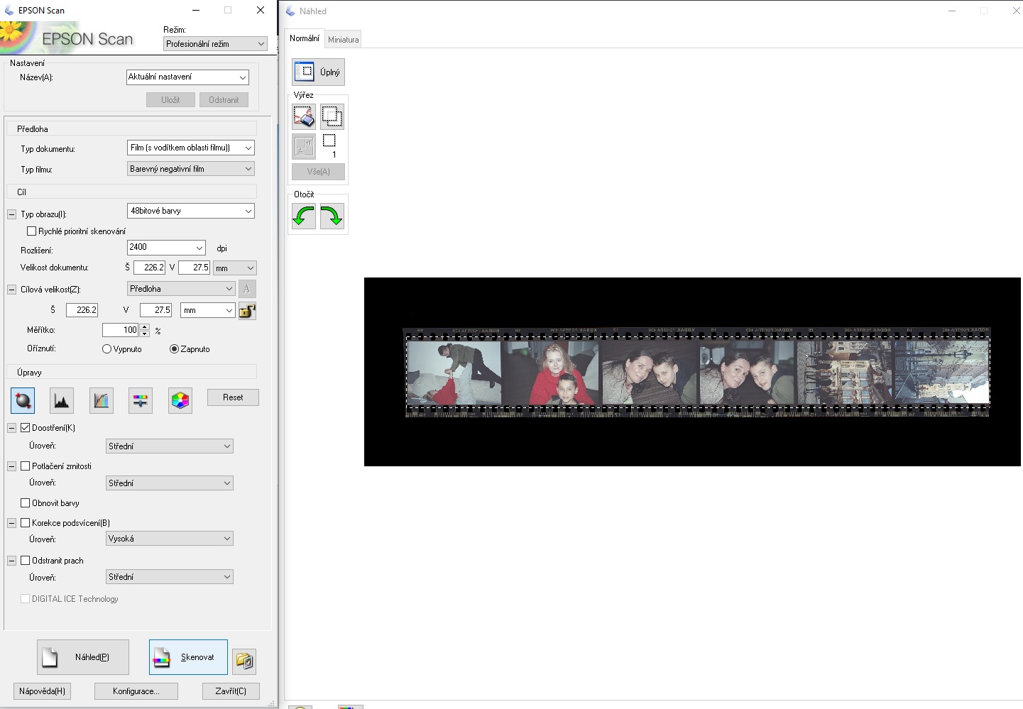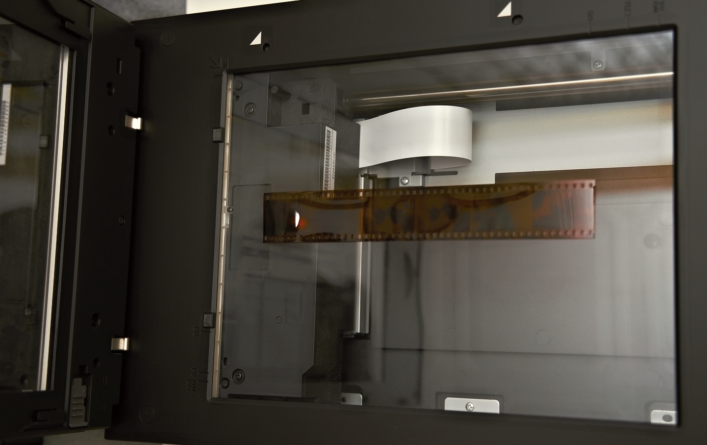 Včera jsem skenoval ten vyvolaný Kodak Portra 400, úplně rovný, žádné prohnutí do žlábku, takže rovnou na sklo