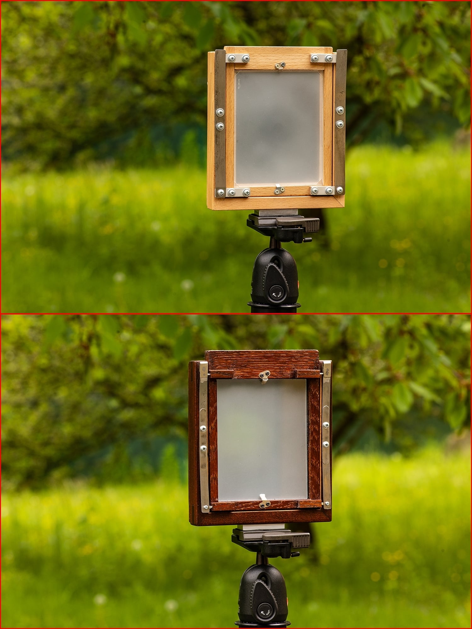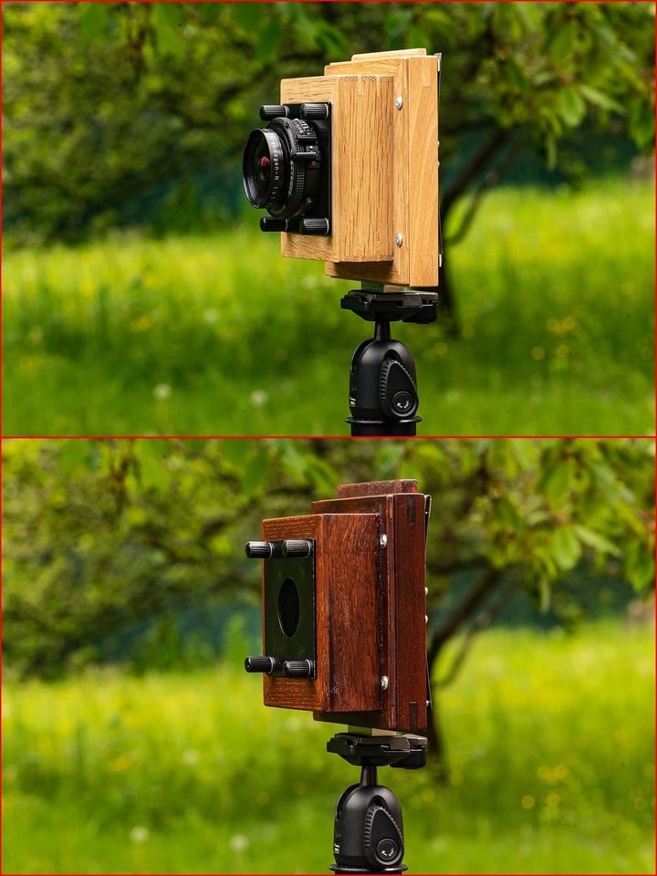 Vyrobit posuvný držák na uchycení "zad" s matnicí, podobně jako toto, navíc i na kazetu Bronica.