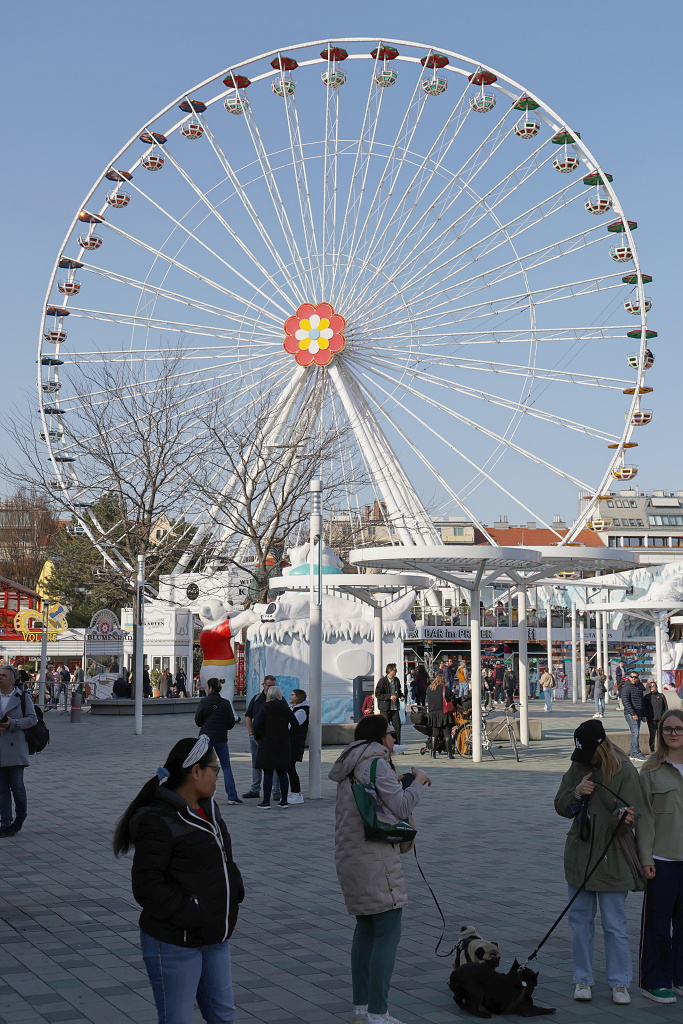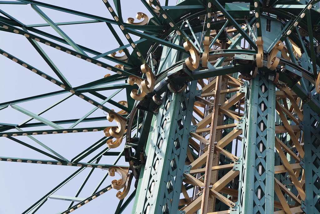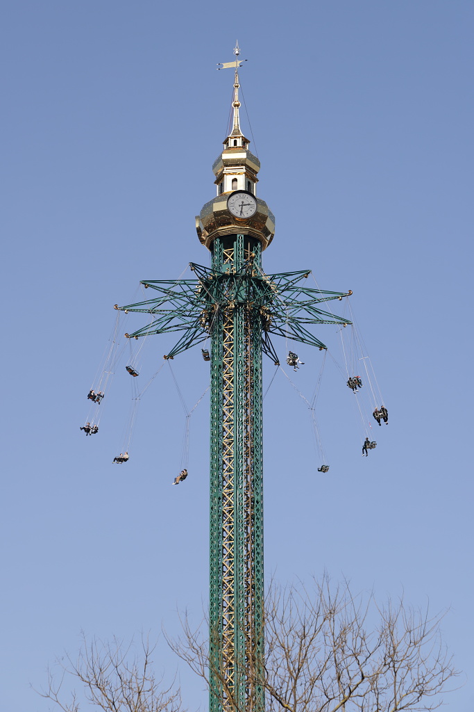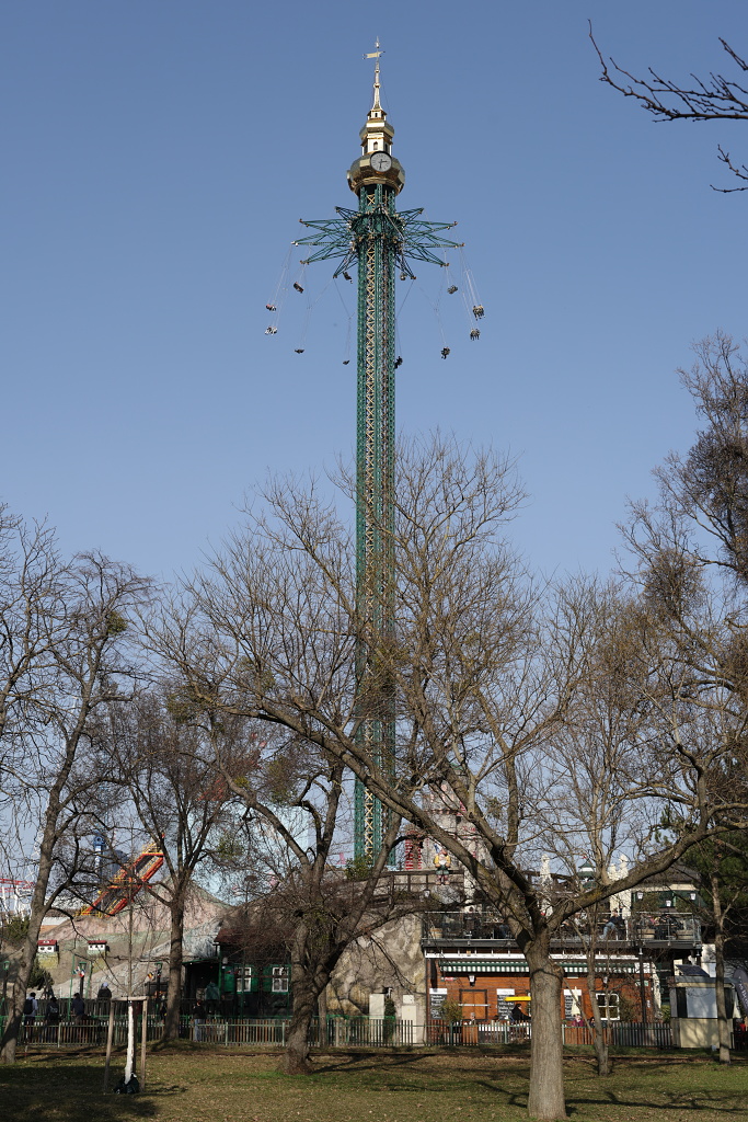 Ta věž s kolotočem má celkem 117m a spolu s ruským kolem jsou asi nejznámějšími stavbami v Prátru.