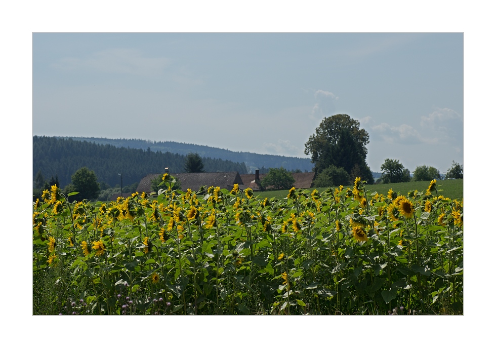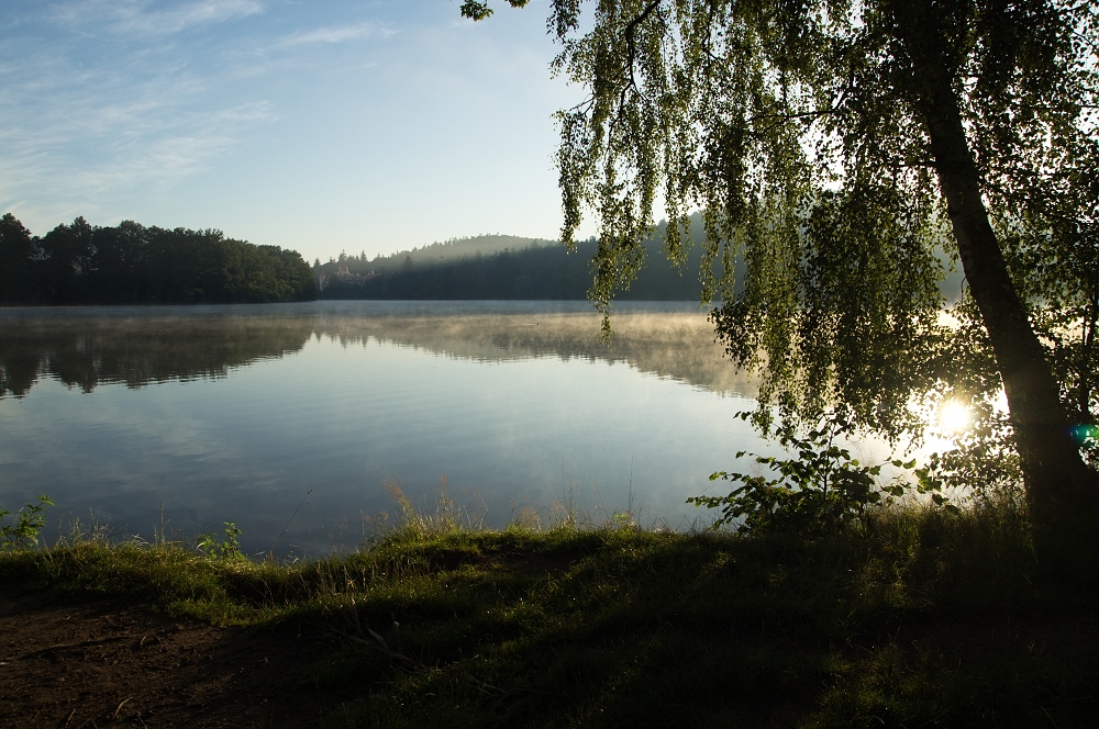 Včera jsme po dlouhé době vyrazili na ryby, bylo to moc pohodové lenošení. Usadili jsme se na Žinkovech proti zámku, pěkně ve stínu pod stromy. Sice se ráno nevybarvilo podle mých představ, ale nemůže být pokaždé mlha s červánkem i tak bylo moc příjemné. Když přešlo nejpěknější světlo, vyrazila jsem k Bohouškovi, že si půjčím nabízená vnoučata :D , ale to nás Bohoušek jen zkoušel, za nic na světě by je nepůjčil. Borůvky pro ně pěstuje jako palce a musím potvrdit, je to lahůdka. (n) Ještě jednou děkuji za milé přijetí. Do odjezdu z Žinkov jsem ještě stihla najít kus od rybníka slunečnicové pole. Ačkoliv jsem původně šla na louku s 90/2,8 na kytičky, neodolala jsem, vešla mezi slunečnice a zkoušela něco z té krásy zachytit. Nevím, jak moc se mně to podařilo, ale byla to krása. Něco ze včerejška přidám. Mějte se pěkně M.K.