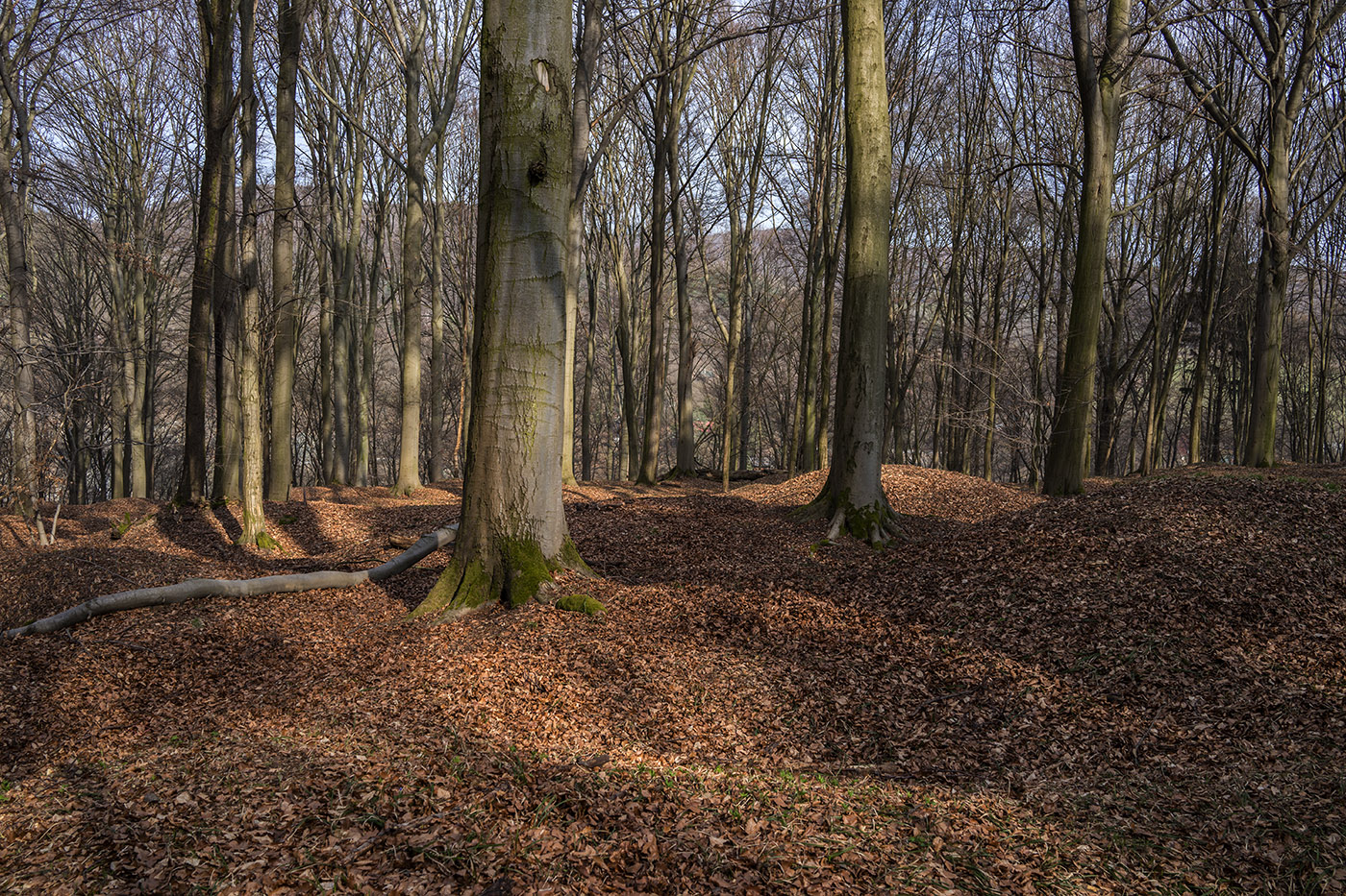 Všimněte si toho nerovného terénu v lese. To jsou ještě památky na těžbu zlata v této oblasti.