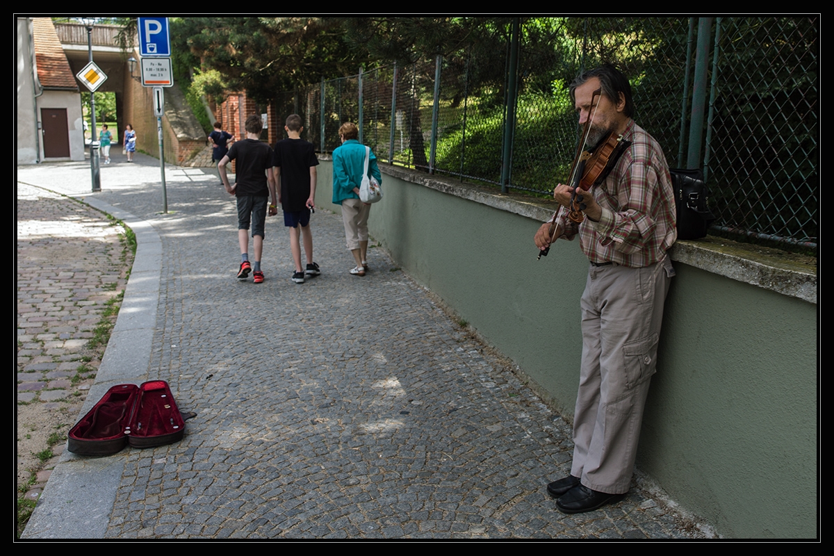 Dnes z Vyšehradu. Houslista hrál děsně falešně. Také ale nevybral skoro nic.