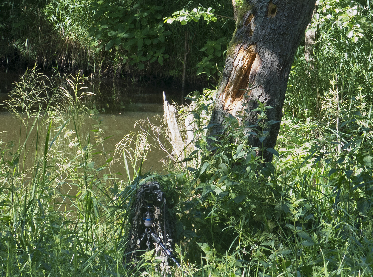 Radiová spoušť ale neumí nastavit EV, tak to dopadlo tak (nastavit foťák kde bude mít přibližně hlavu není legrácka-oko tmavé ryba bílá, hned je problém). Dáme další pokusy s kafíčkem a v klídku z auta (žádní komáři, pohodlí, budování krytu) .