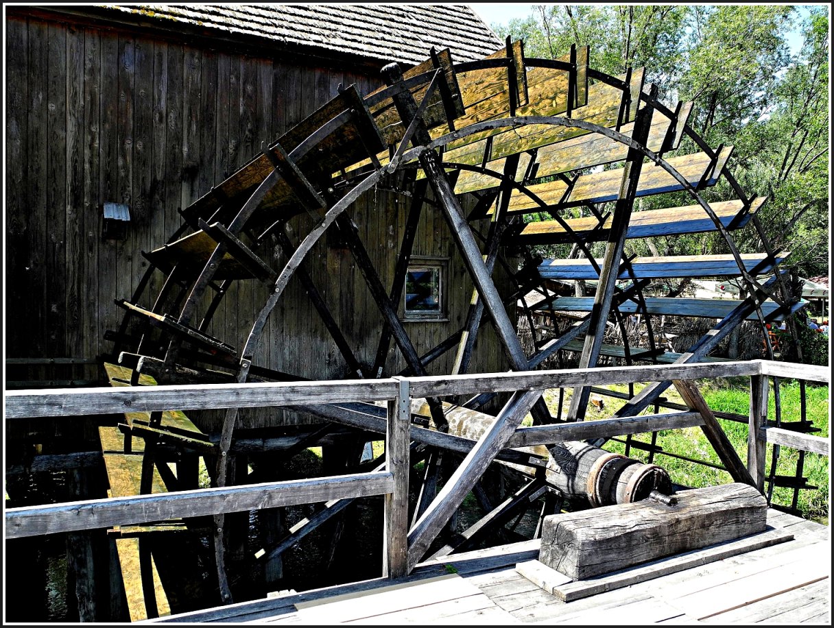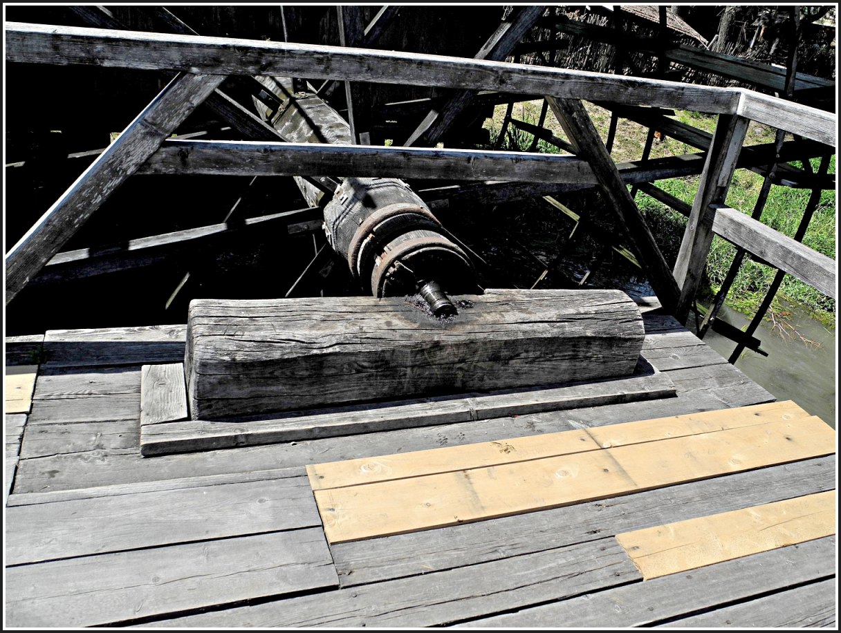 Posledné zábery z mlyna v Jelke, pohľad na Malý Dunaj z plošiny mlyna a pohľad na hnacie kolo a kuriózne ložisko.