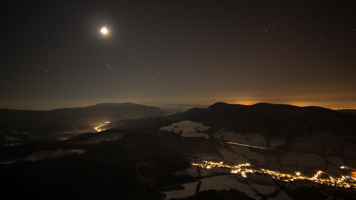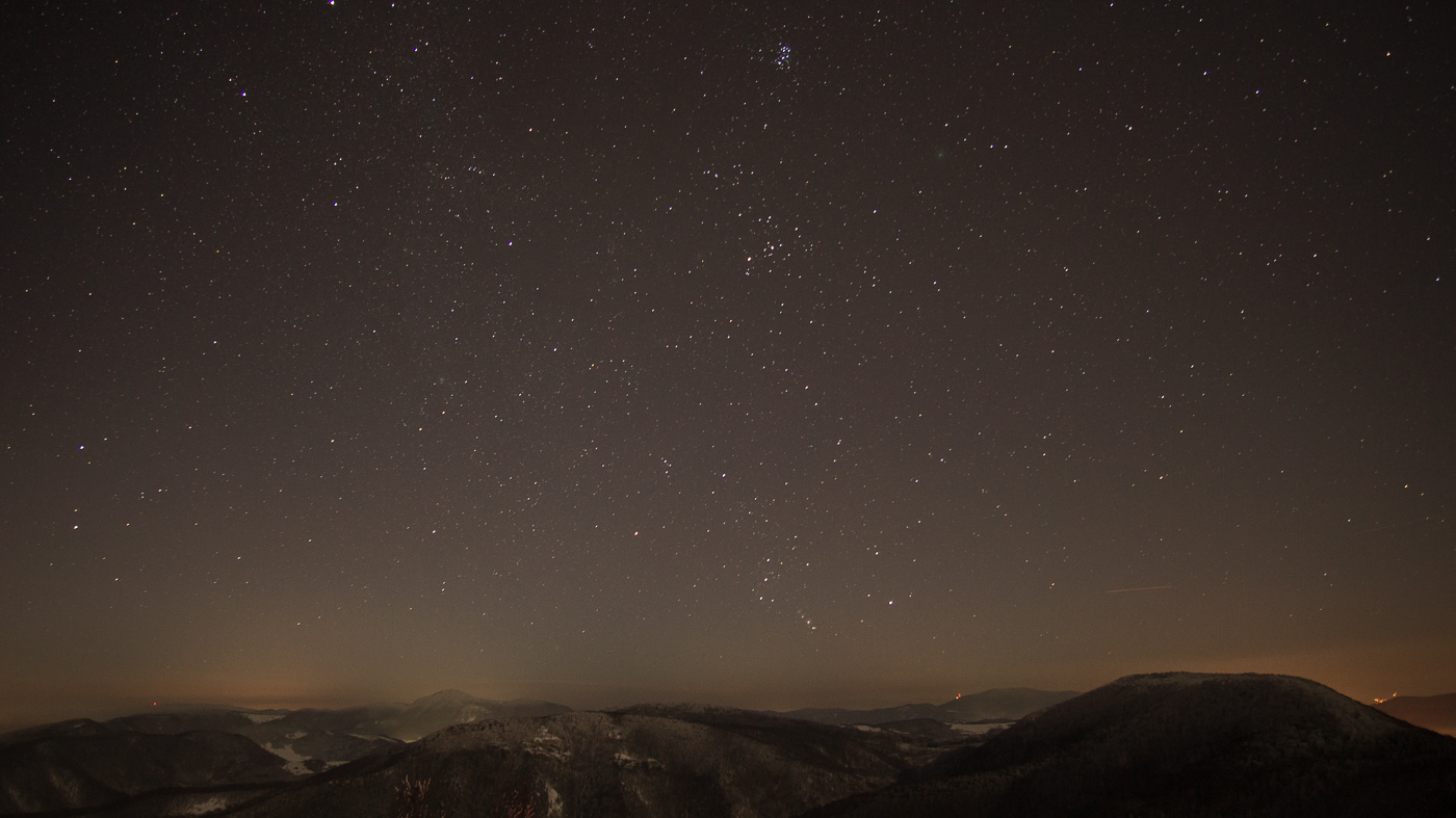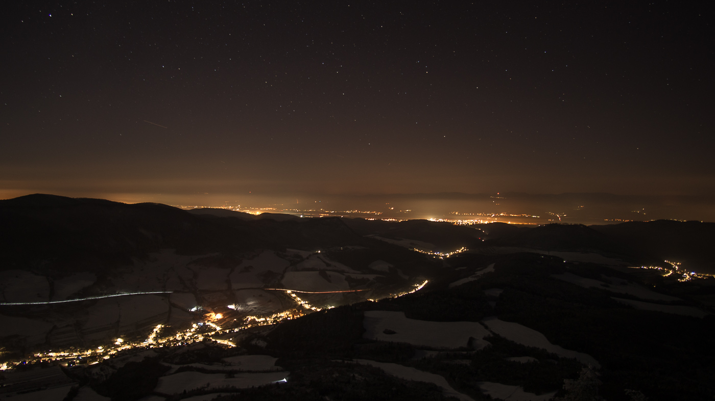 Pridam foto, na ktorej je odfotena vdaka dlhemu casu. Mozte ju hladat(je tam) PS: lampy by mali svietit na chodniky a cesty a nie do oblohy!