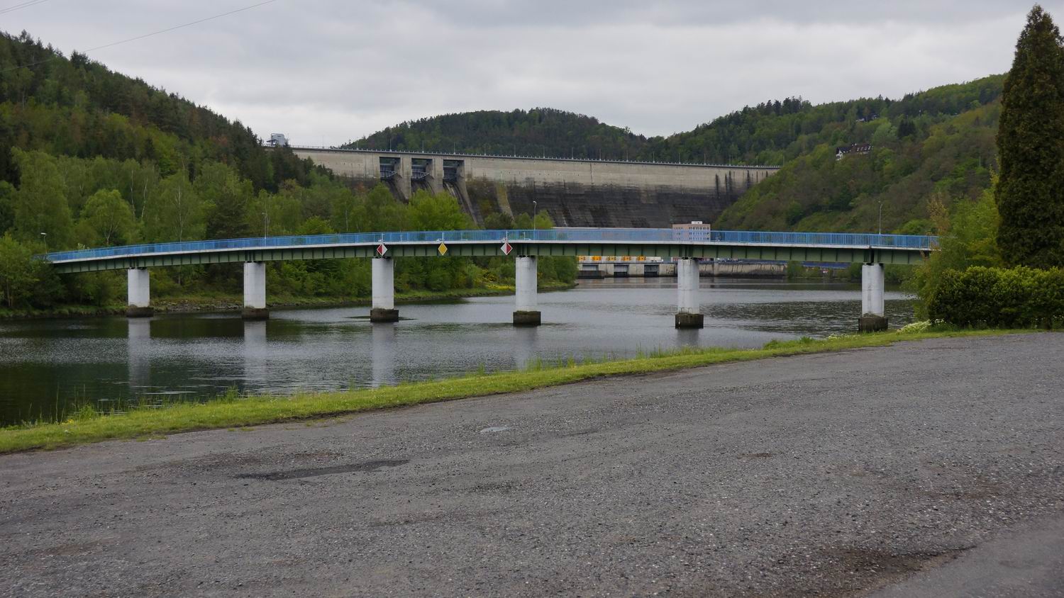 Solenice. Před povodní zde byl byl dřevěný most, tento modrý je nový. Za mostem na druhé straně řeky byl podnik Hamiro, kde měla práci velká část žen z této obce. Tento podnik také už není, ale ne zásluhou velké vody.