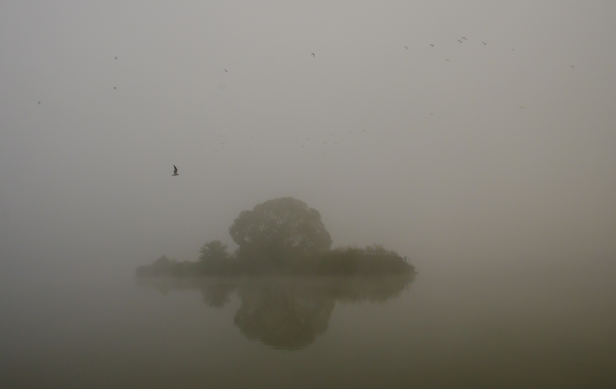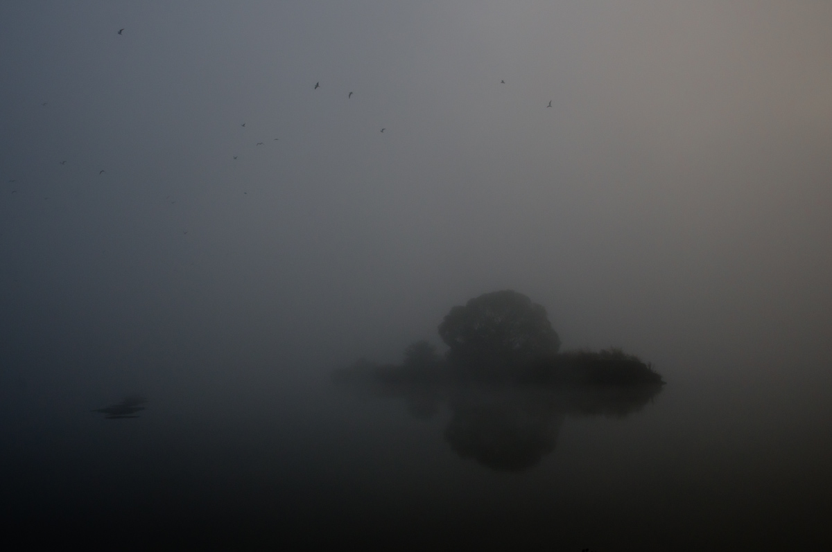 A ještě dvě mlhoviny,slunce nevylezlo,nemohl jsem dál čekat.Ale slyšet letět labutě,nevidět je,To by mně zajímalo, jak se v té bílé tmě orientují,potvory.