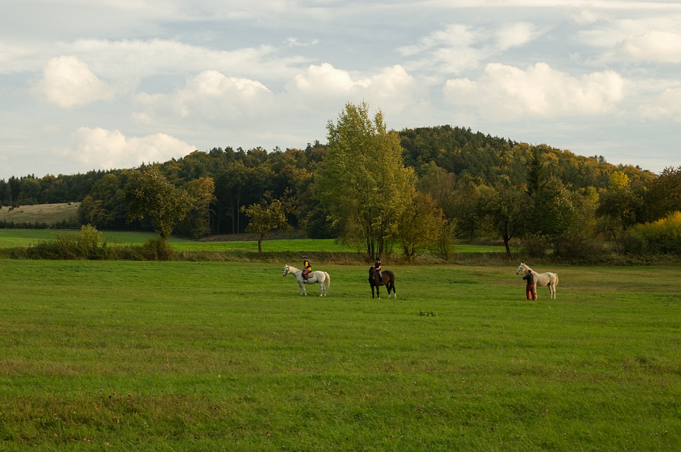 Vyrazila jsem dnes s fotoaparátem ven, odpoledne u nás na chvíli i vykouklo sluníčko, ale nakonec se všechno zaonačilo jinak. Fanda chtěl jít na Holeček, že se jen tak podíváme, ale vzal si flintu. Já fotoaparát, nasadila jsem si Vivitar, že budu mít univerzál, monopod a abych byla na všechno nachystaná do kapsy nůž a větší igeliťák. Ušli jsme v lese asi sto metrů a chtěla jsem udělat fotografii přes paseku na prostější stráně u Jablečna. Světlo mezitím mizerné, udělala jsem dva cvaky a vracela se zpátky. Jenomže tady suchohříbek, tady další, zase ..... Skončilo to houbařením, v duchu jsem si hubovala, proč si beru fotoaparát do lesa, navíc s docela těžkým objektivem. Vláčela jsem foťák, monopod, velkou tašku hub a udělala dva cvaky. Zkrátka, přinesla jsem si práci (a to jsem si myslela, že je u nás s houbami konec