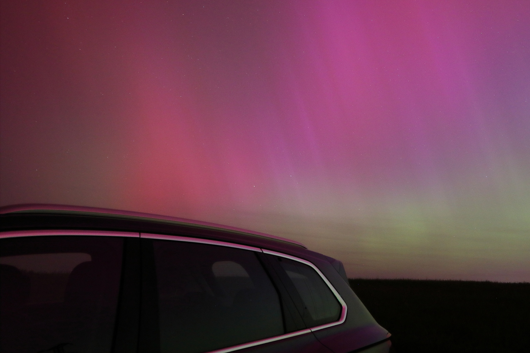 Polární záře se objevila i v našich končinách.