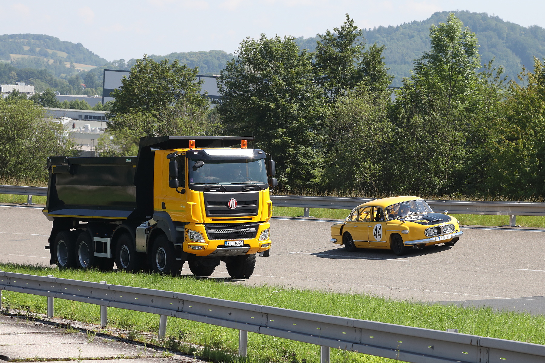 S nostalgií jsem vzpomínal, jak jsem na zkušební dráze povozil manželku v Tatře MTX. Nebo jak jsme jezdili po polygonu s "Hugoletem", což nebylo nic jiného, než trubkový rám, na kterém byly zavěšeny komponenty, chystané na novou osobní Tatru. Vážilo to pár set kilo, jezdilo to jak čert (dobře krmená V8), po hlavním okruhu se dalo celkem bez problémů 180km/h. Jen jsem pak chvíli měl hubu nakřivo od odstředivé síly, když se jede pořád jen do zatáčky :-)...