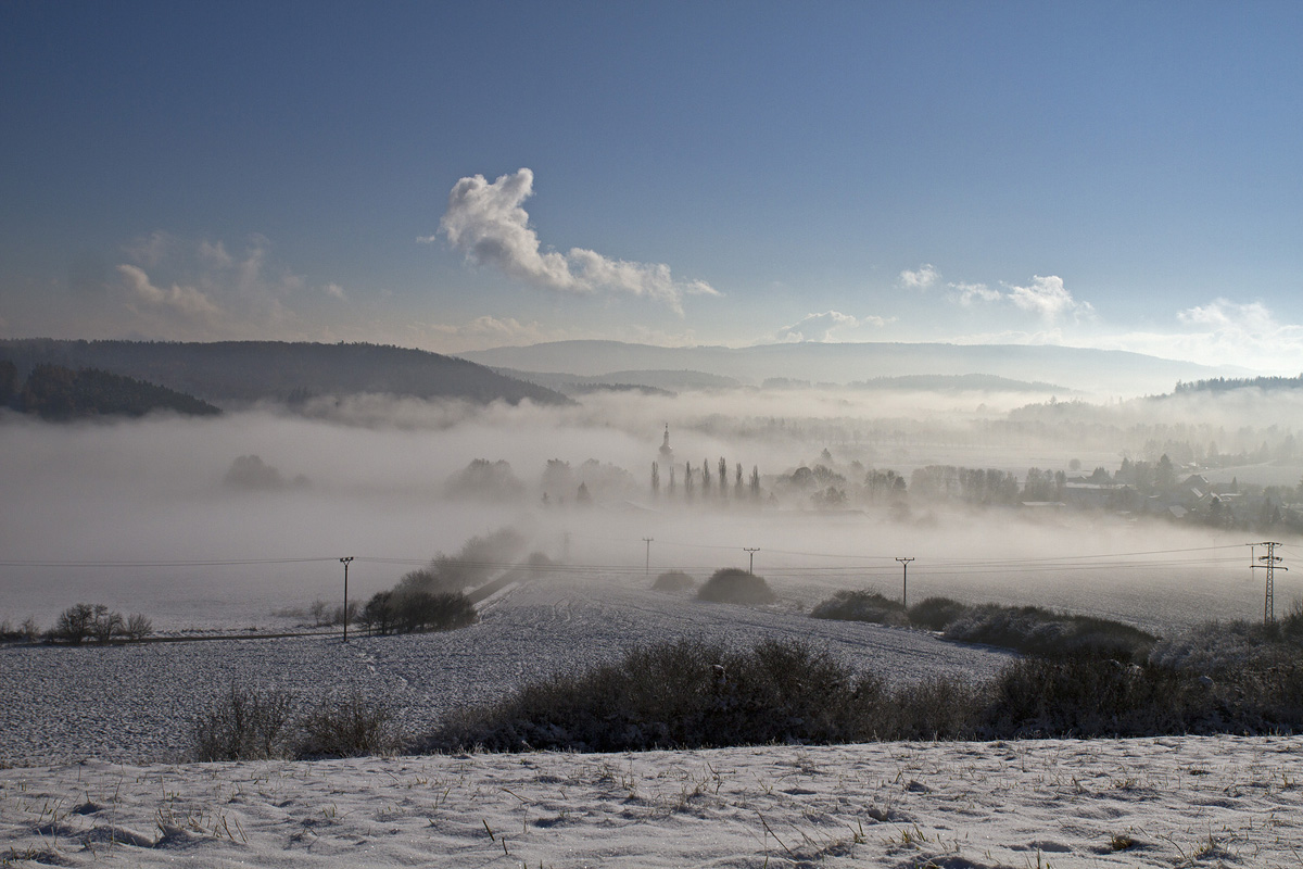 Škoda, že ta mlha nebyla "čistá" (opar), nechalo by se pěkně fotit v pozadí ještě neopadaly modříny a listí na bukách.