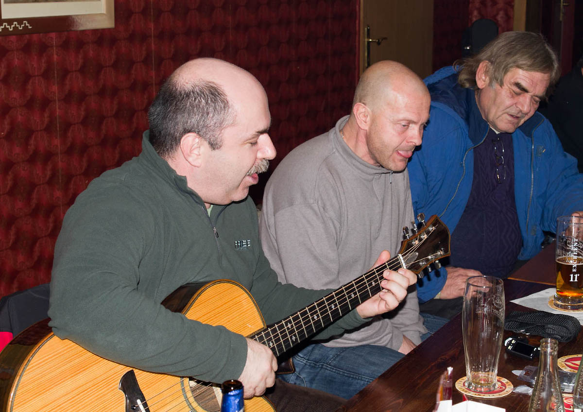 Jindra,Pedroz, foto Já s nasazením života zvednul sedinku, do víru velkoměsta vyrazil fotit.... Naposledy přátelé, kupuju termosiho láhev, následuju Makáče a Jindru, balkón to jistí. Kde se ty lidi berou, bylo to o hubu, o foťák......