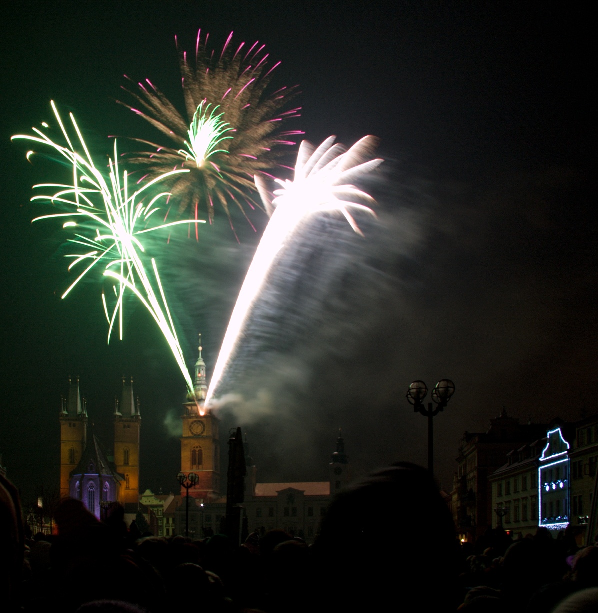 Včera jsem o půlnoci zašel na chvíli k řece, tož dám jednu světelnou holubičku (podle velikosti spíš husa nebo labuť )... Poté, co mě prohnala poškozená raketa ze sousedního dvora, jsem radši zalezl domů...
