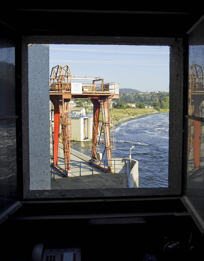 Rozepře naštěstí pominuly, ale jinak tu poslední dobou chcíp pes! Tak dávám alespoň snímek z konzervy. Je to okno mého posledního pracoviště ve Štěchovicích. Měl jsem kancelář přímo v tělese hráze a při velké vodě se kousek vedle mého okna valila voda z přepadů, to jsem musel mít okno zavřené, abych neměl vodu i na stole. Říkali jsme tomu Daliborka. Proto také jsem si na závěr své působnosti v tomto mém posledním pracovišti udělal svůj poslední snímek. Mějte se! J.