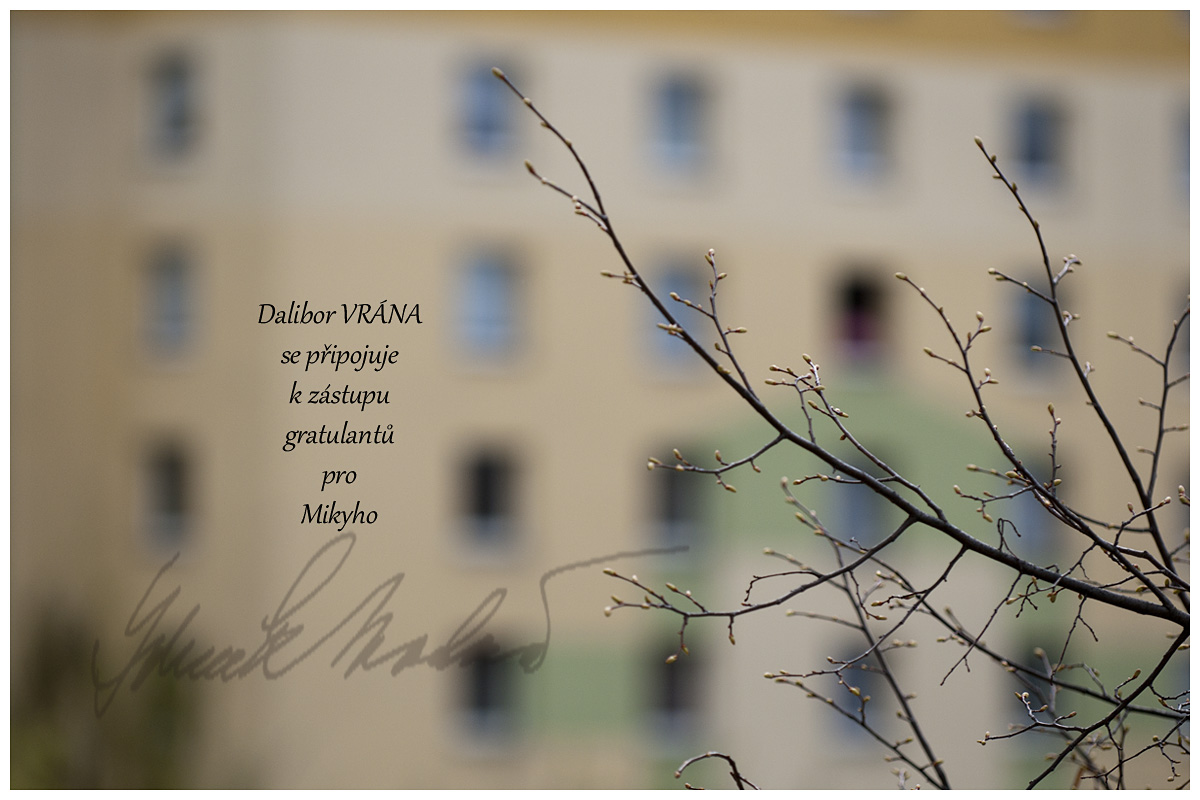 Mikuláši, přidávám se k zástupům gratulantů, přeji vše nejlepší, hlavně pevné zdraví, pohodu a vždycky dobré světlo. M.K.