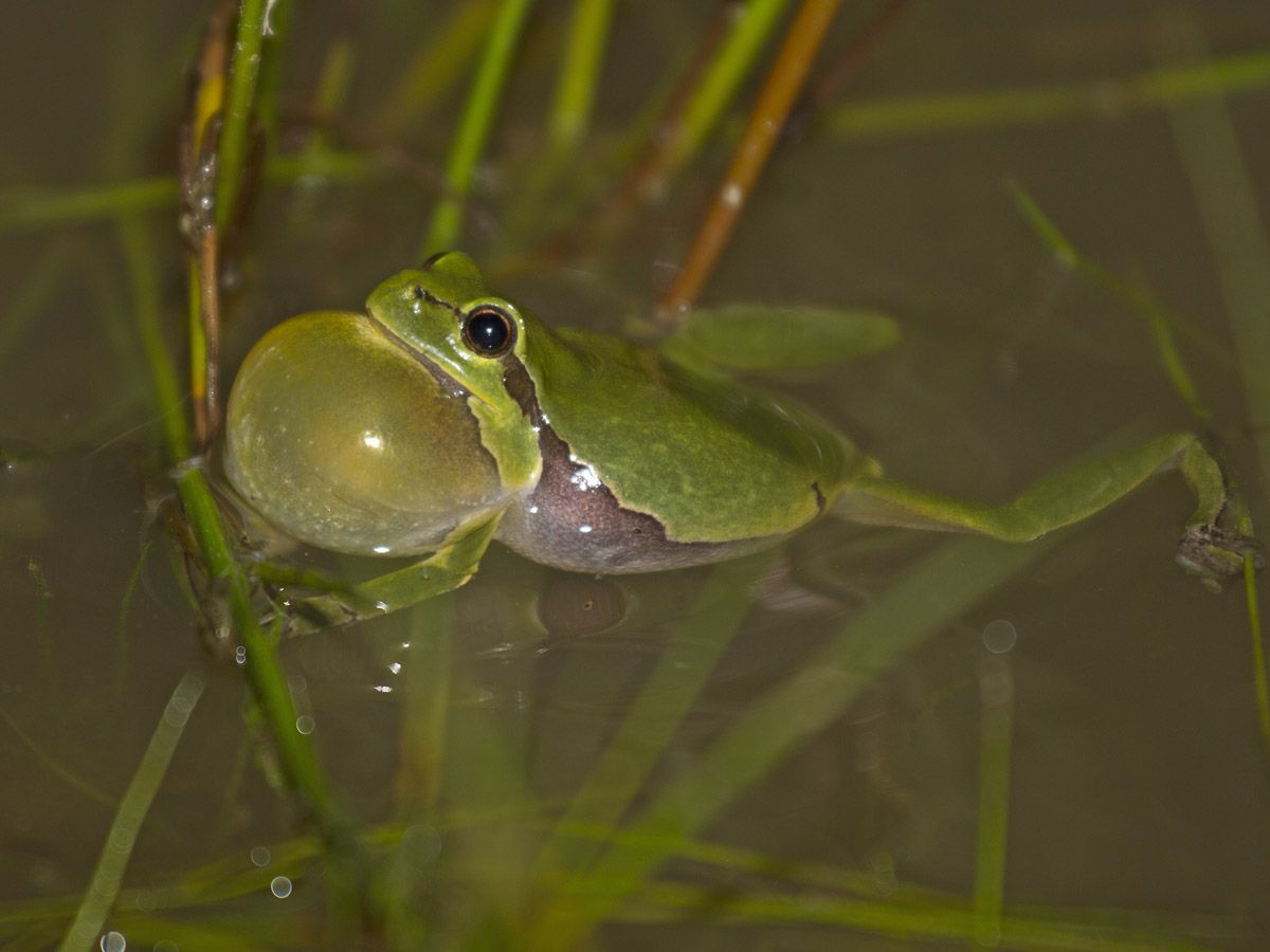 Včera večer jsem si byl ještě jednou cvaknout. 100/2,8 se moc nechytala a když tak všechny "jogurtová víčka" na blesku na nic. Prostě žabáci jsou mokří a je to focení na prd (komáři, stativ tahat ve vodě a nejsou nádraží, pořád lezou).