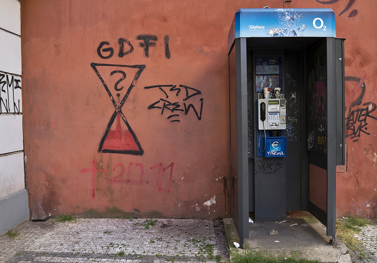 Často chodím na Hlavák Růžovou ulicí. Nachází se zde telefonní budka. "Stamgasti" od Hlaváku zde často nacházejí útočiště, když si dávají svou dávku. Nápsy na zdi něco naznačují. Zřejmě nějaká nehoda.