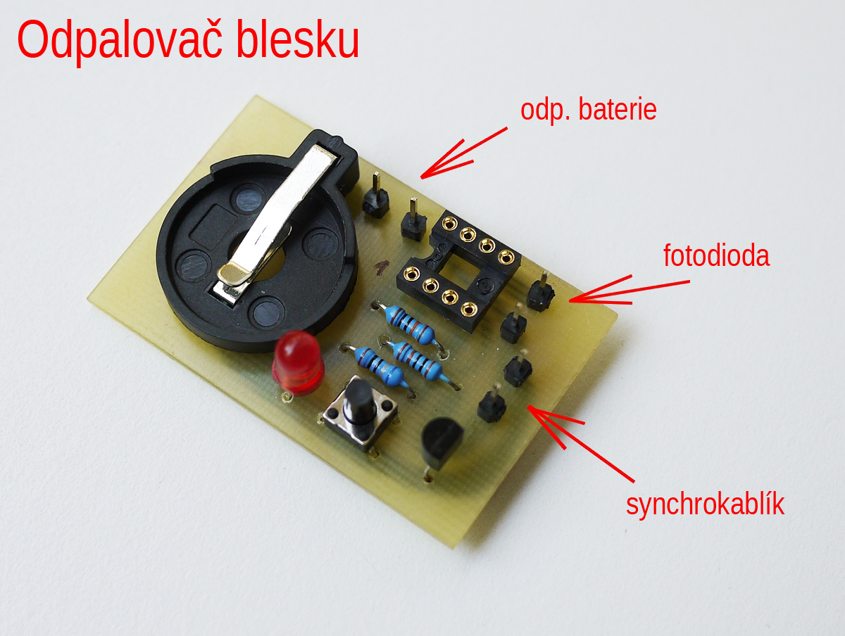 Když jsem zde už zmínil ty blesky, tak snad ještě přidám jednu čerstvou fotku, ještě nedokončeného odpalovače externího blesku. Jen osadit procesorem, připájet fotodiodu, zasunout baterii a zabudovat do krabičky. Tu diodu nebudu pájet přímo do tišťáku, ale na jumpery, protože ji chci mít výše.
