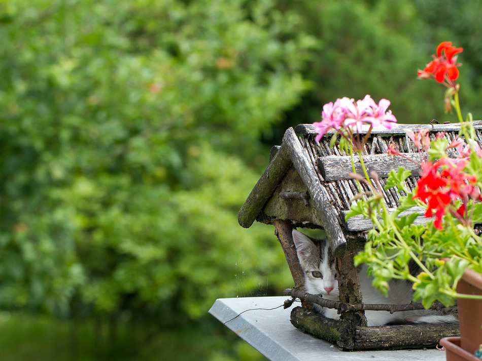 Furt makám na zahradě, přehazuju haldy a vo rauchpauze najednou koukám, na haldě sedí nějakej divnej fógl. Evidentně se mu tam líbilo, protože počkal až přezbrojím foťák na dlouhý sklo a pořídím několik cvaků. No nevím, asi někomu ulít papoušek? :?: :o