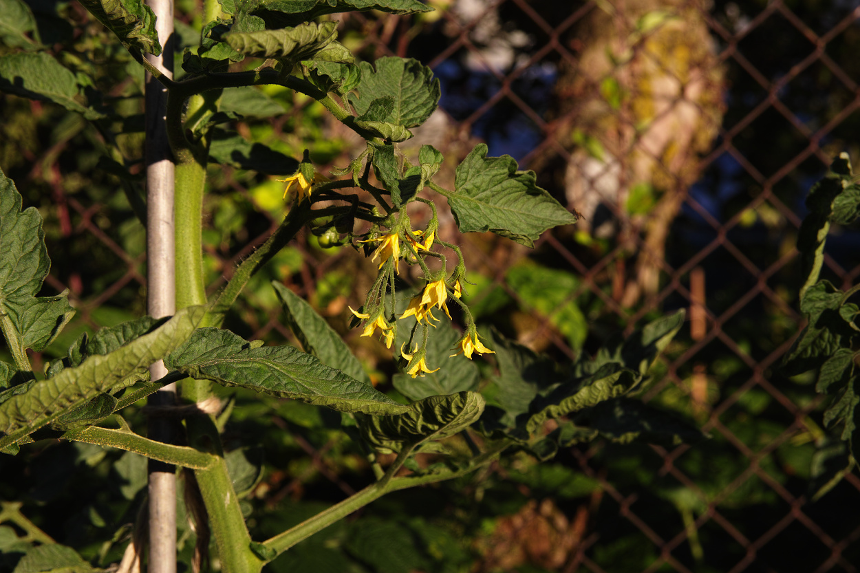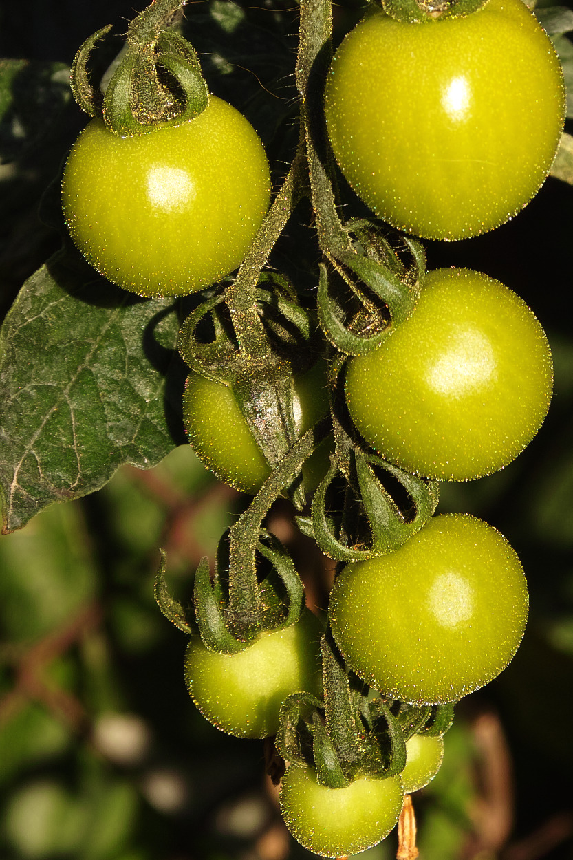 Jak jsem přivazoval rajčata, bylo moc hezky... To "ochlupení" se tak zvláštně lesklo, že jsem zašel pro foťák. Jenom jsem měl strach, že to přesně nezaostřím ani manuálně, není to ani Canon ani Nikon... 8-) :D .Nemám makro objektiv, takže pouze seťák 17-50/2,8. Středové kompozice kvůli přesnému zaostření, bodové měření. Pak už se mi s tím nechtělo točit, je to ze stativu. A dva výřezy, propagaci Sigmy by to uškodit nemělo... ;) :lol: Je to bez úprav, pouze vyvolané RAWy.