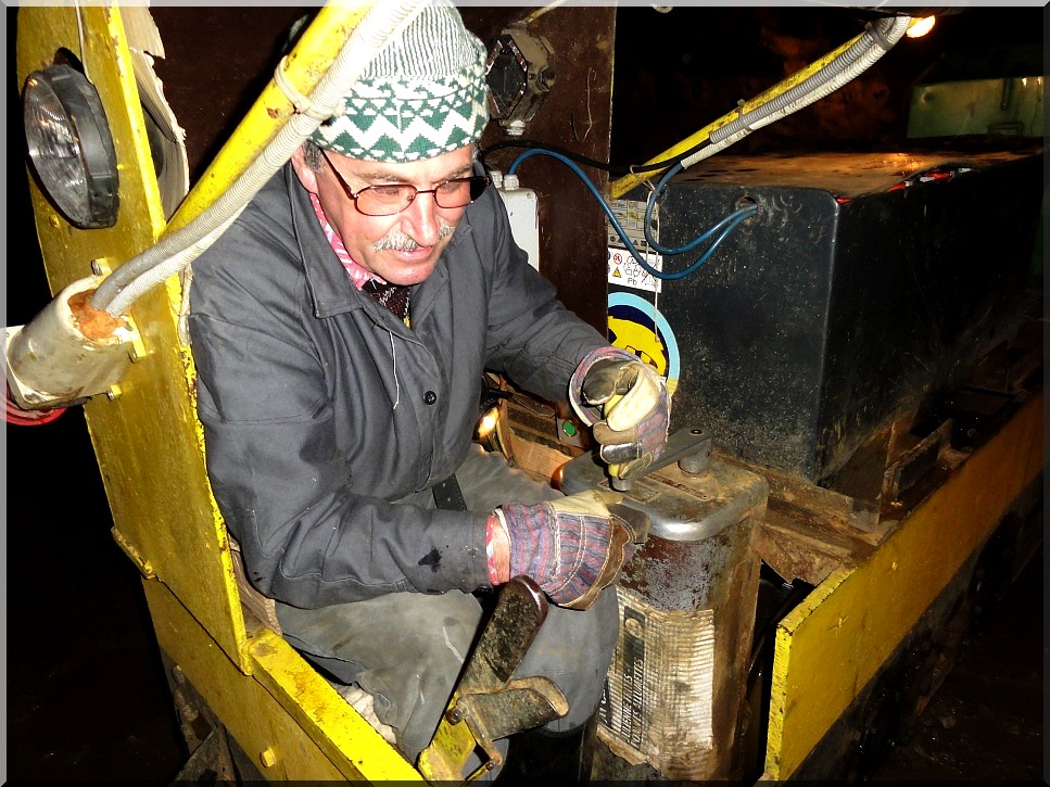 Na obrázku je mašinfíra z grafitového dolu v Českém Krumlově. Hodně hluboko nás zavezl.