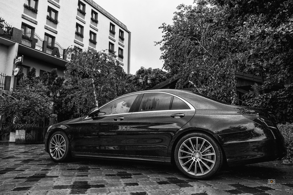 jo přesně - raději tu skupinku oříznout ještě víc i zespodu, než jen bez chodidel. Asi jako ty dvě servírky. Ty listy - to jsem si nevšim tedy . Budiž. Mercédes je již tak pronutý jako luk a buclatý a ta 24mm to ještě zdůraznila