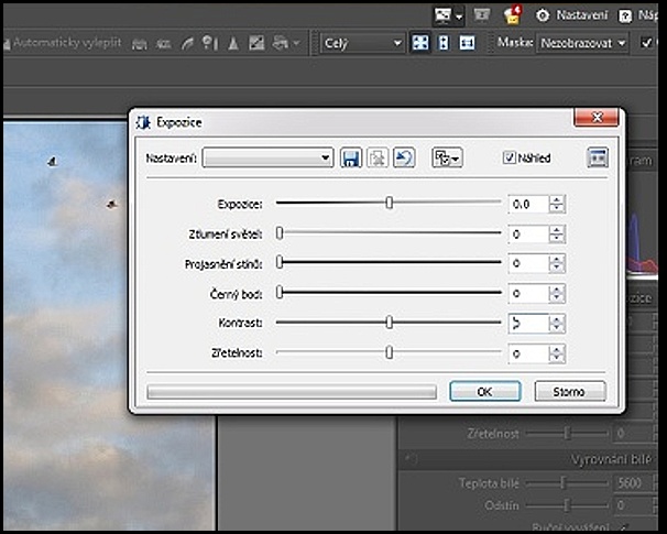 Tu fotku jsem upravil v Nastavit osvětlení, zvedl jsem kontrast, stíny a sytost. Světla jsem neměnil. Tím bych ještě zvýraznil ty mraky. Hodnoty jsem zapomenul, pardon.