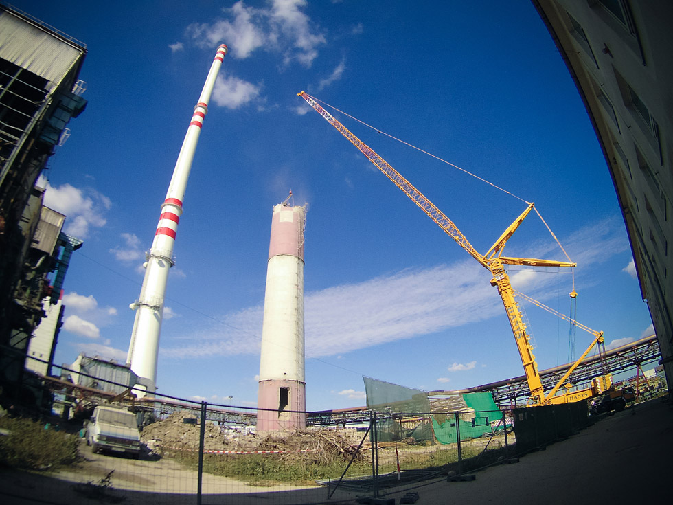 Demolácia komína diaľkovo riadeným robotom... vyhotovené s Drift HD.