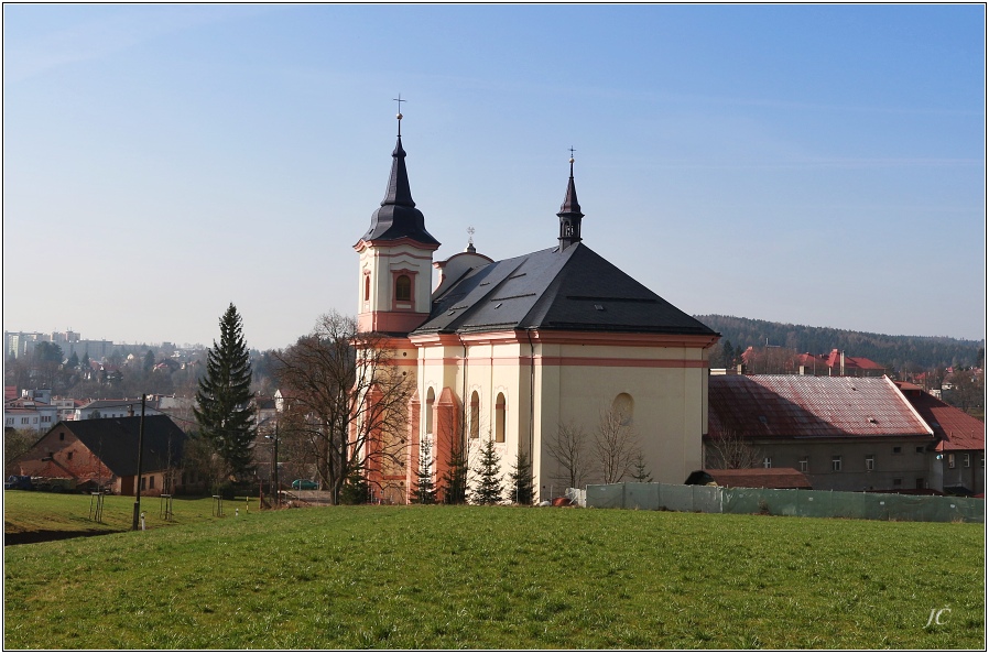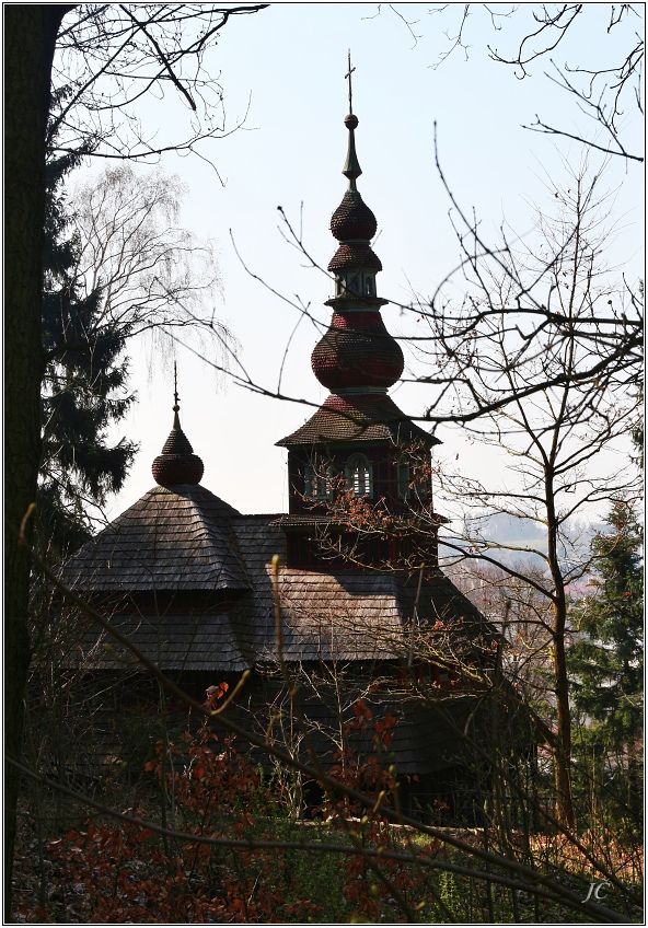 Tři z výletu na Novopacko - kostel u Paulánského kláštera, řeckokatolický dřevěný kostelík z Podkarpatské Rusi (bohužel blíž se k němu momentálně nedalo) a Husův kopec.