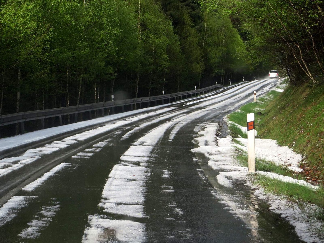 Dnešní odpolední krupobití v šumavském Vimperku.