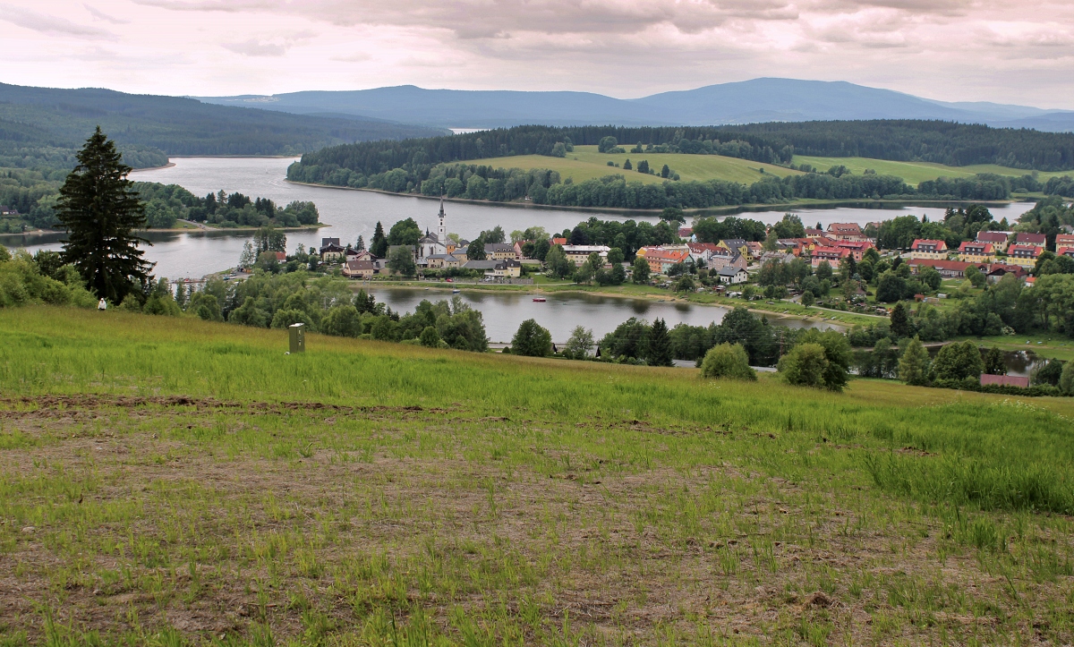 Výhled na Lipno a město Frymburk.
