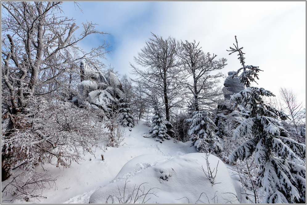 A pro změnu týden staré z Broumovských Stěn. Přes 10 cm sněhu a sluníčko, paráda. No, dneska už to tam asi vypadá bohužel jinak...