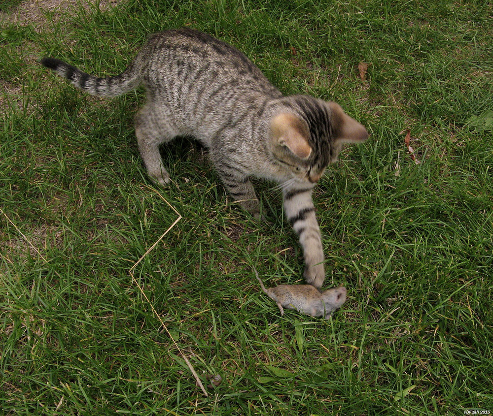 Ze života kotěte - první úlovek,to bylo radosti a blbnutí :D