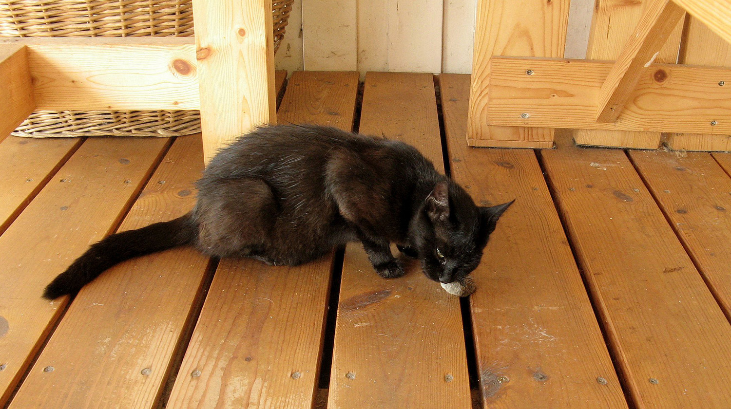 Kocour domácí, nebo spíše Vrahoun zahradní. Po přestěhování z bytu na zahradu začal úřadovat. Za loňský rok zlikvidoval cca 100 myší, 5 krtků a pár kusů drobného ptactva.