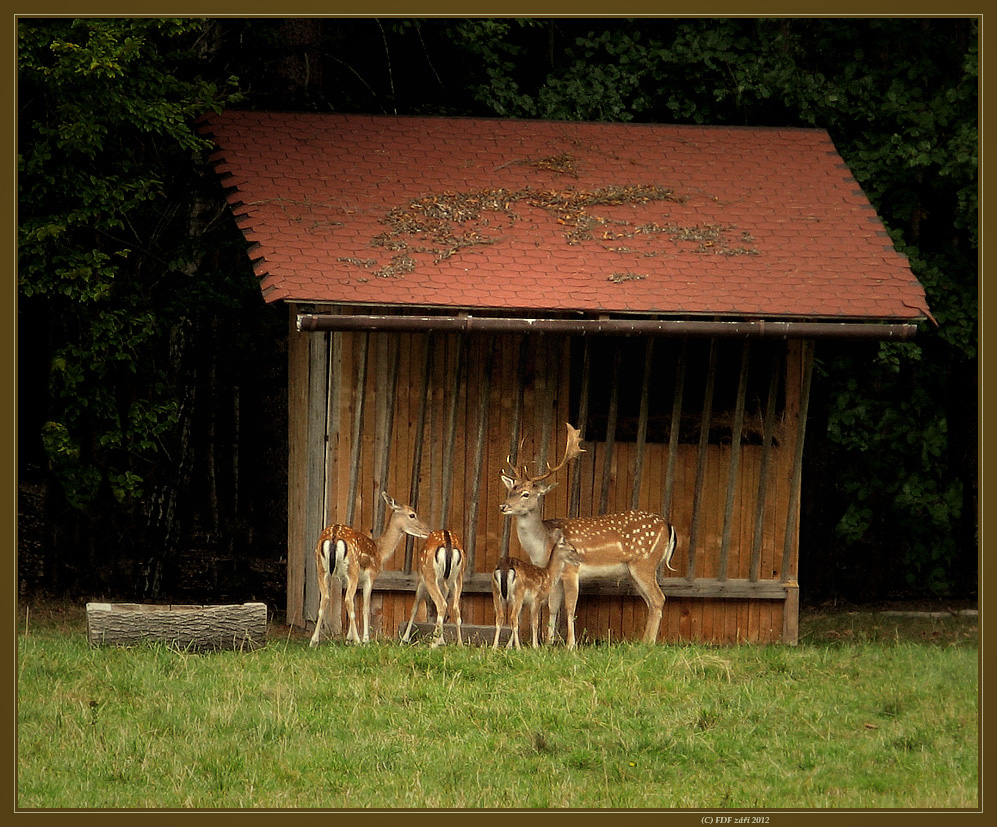 Daňci u krmelce. Plnej zoom 6 x ...( nic moc )