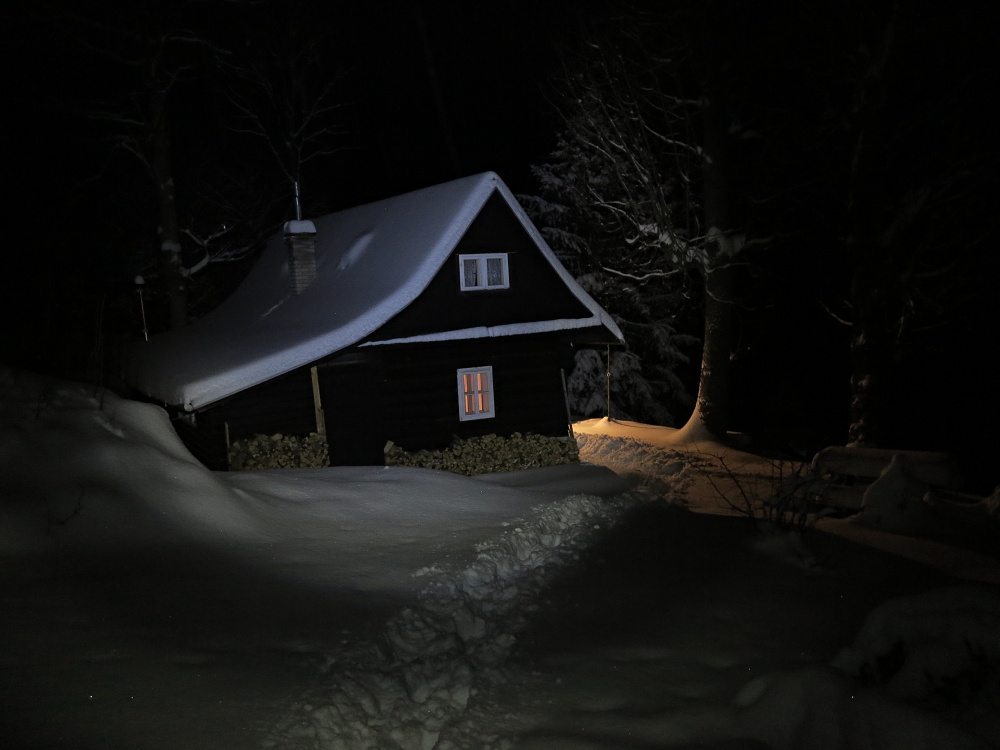 Dám pokus s čelovkou. Noční Valašsko.
