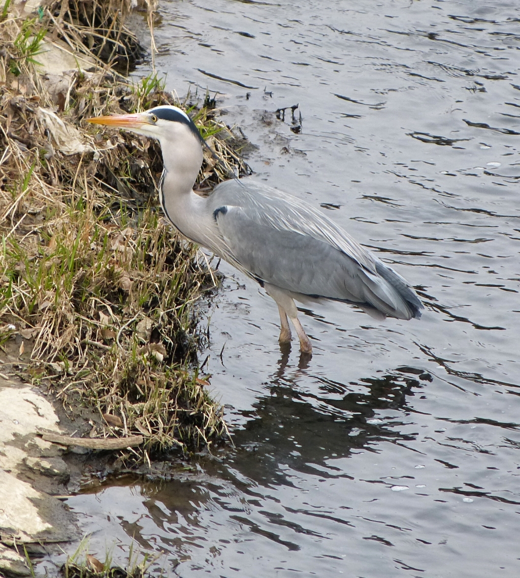 Večeře v řece Dřevnice - volavka. Foceno náhodně z mostu.