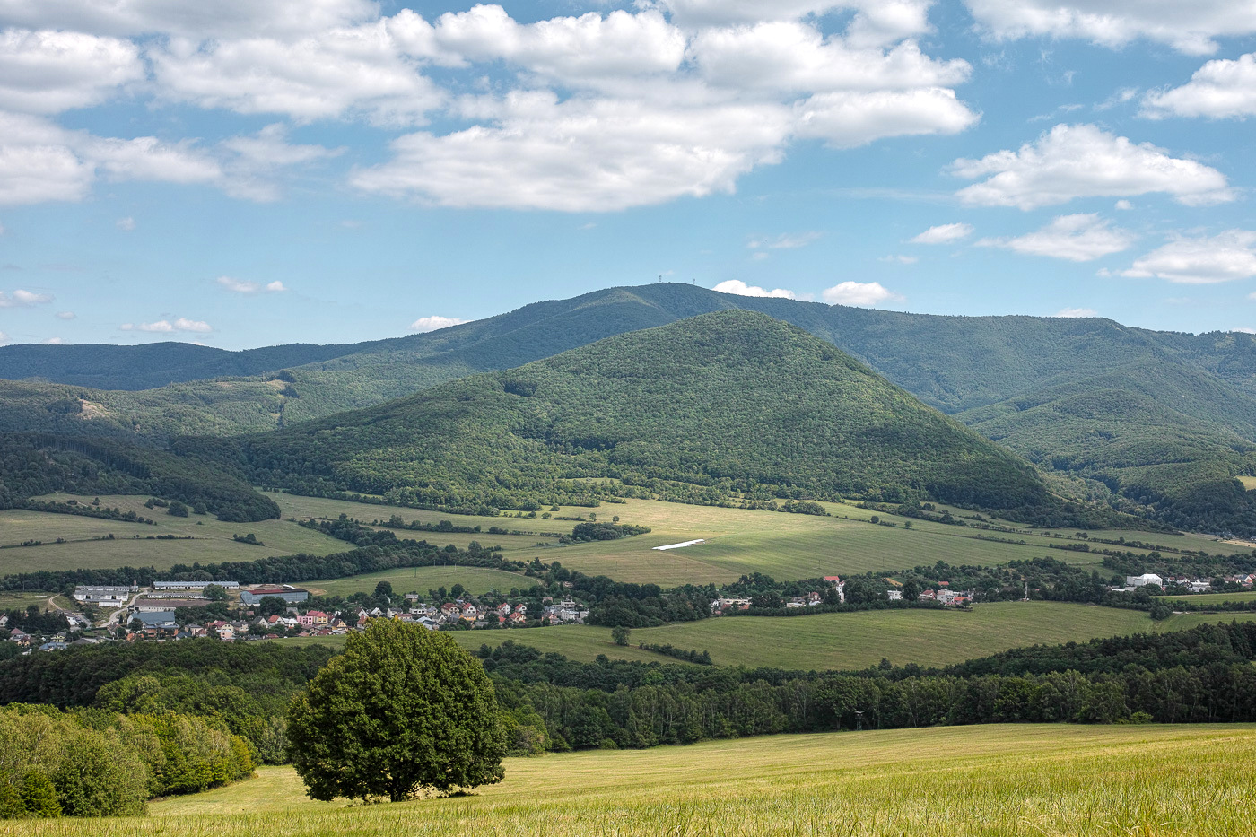 Stále minulá neděle z Chlumu. V pozadí je Kelčský Javorník, nejvyšší vrchol Hostýnských vrchů (865 m) s novou dřevěnou rozhlednou na vrcholu.
