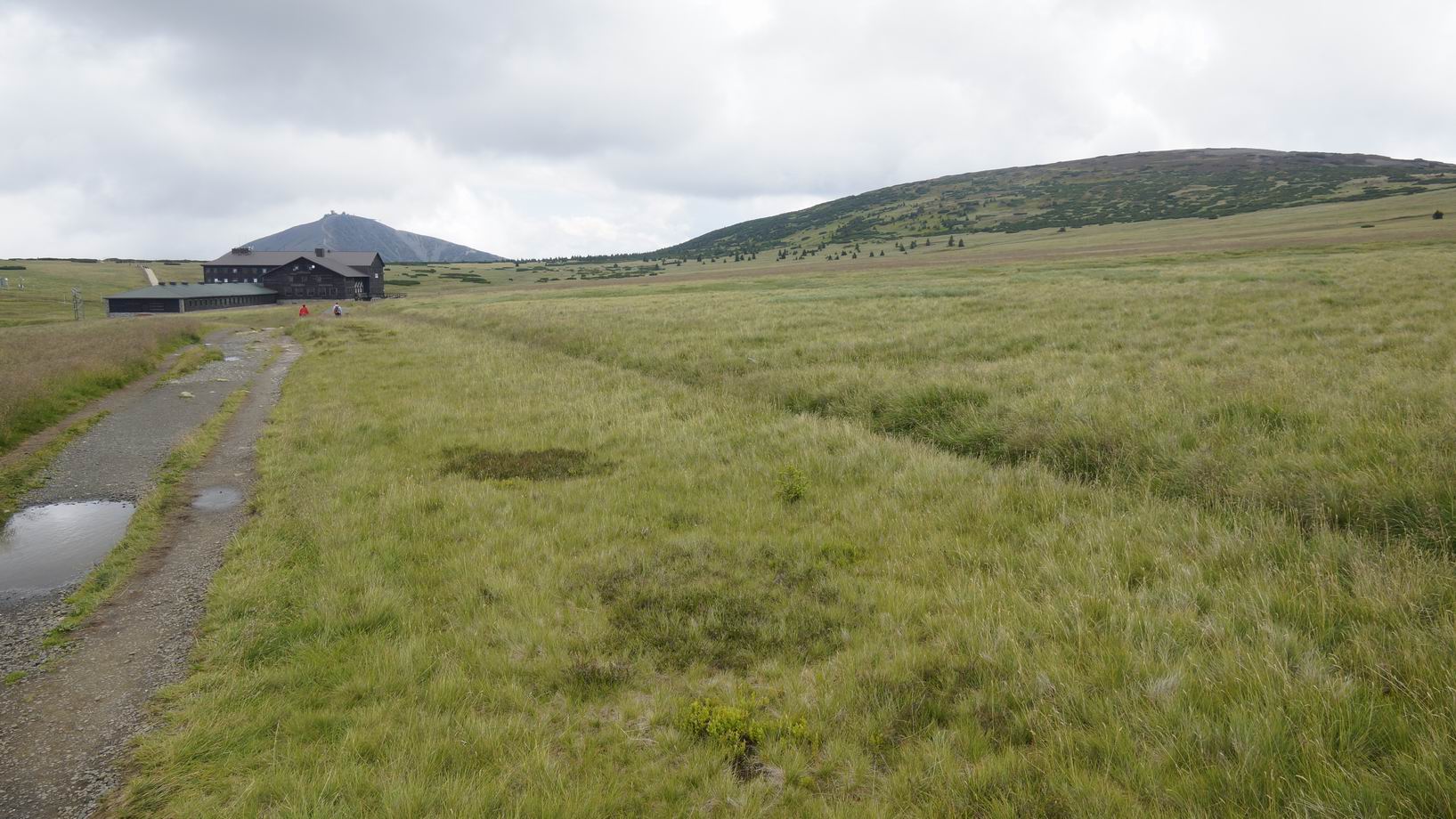 Nemáš ani tušení, z jaské je to foceno dálky, to aby se tam vešla i velká bouda a přitom nebyla Sněžka jen malinká v dáli... Ba dokonce od boudy je Sněžka téměř zcela za horizontem pláně s rašeliništěm a je vidět jen vrcholek v dáli!
