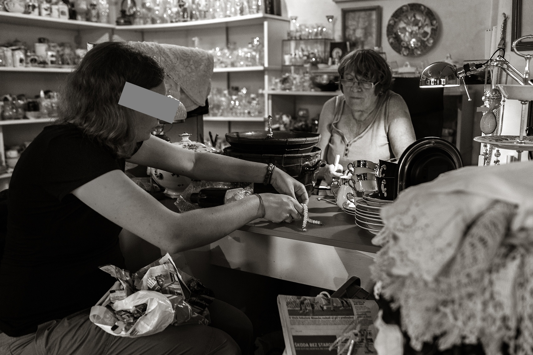 Promiňte tu kamufláž, u takto delikátního snímku, kde je tato žena zřejmě v nouzi a proto navštívila zástavárnu, jsem jinak nemohl.