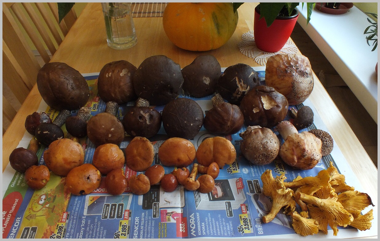 Kozáky Evička suší , z klouzků jsem udělal k večeři smaženici a z poddubáků a masáků jsem udělal na zítra houbový gulášek (n) . Lišky jsem si schoval na pozítří do smetanové omáčky ;) .
