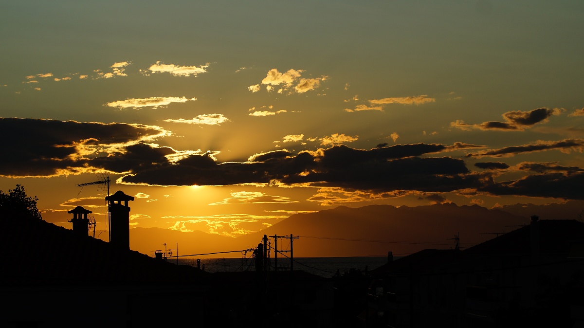 to zkusím také. Západ slunce na Chalkidiky, ta hora vravo je "bájný" Olymp...