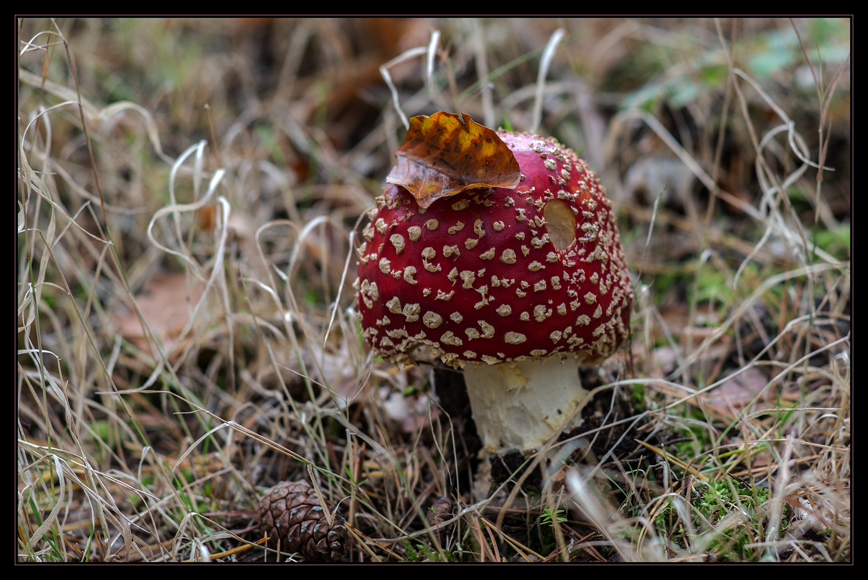 Alespoň jsem si ale nafotil muchomůrku. Více záběrů s rozprostřeným zaostřením kvůli větší hloubce ostrosti. Složeno v PhotoShopu.
