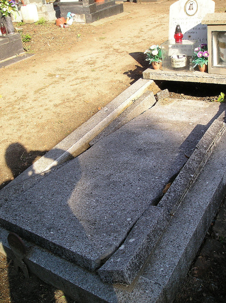 Nojo,hřbitov,s tím je někdy taky problém.Rodinnej hrob od manželky rodičů,roky furt dobrej a najednou se propadla deska....(ty křivý fotky z 5.9.2017 fotila žena :) )